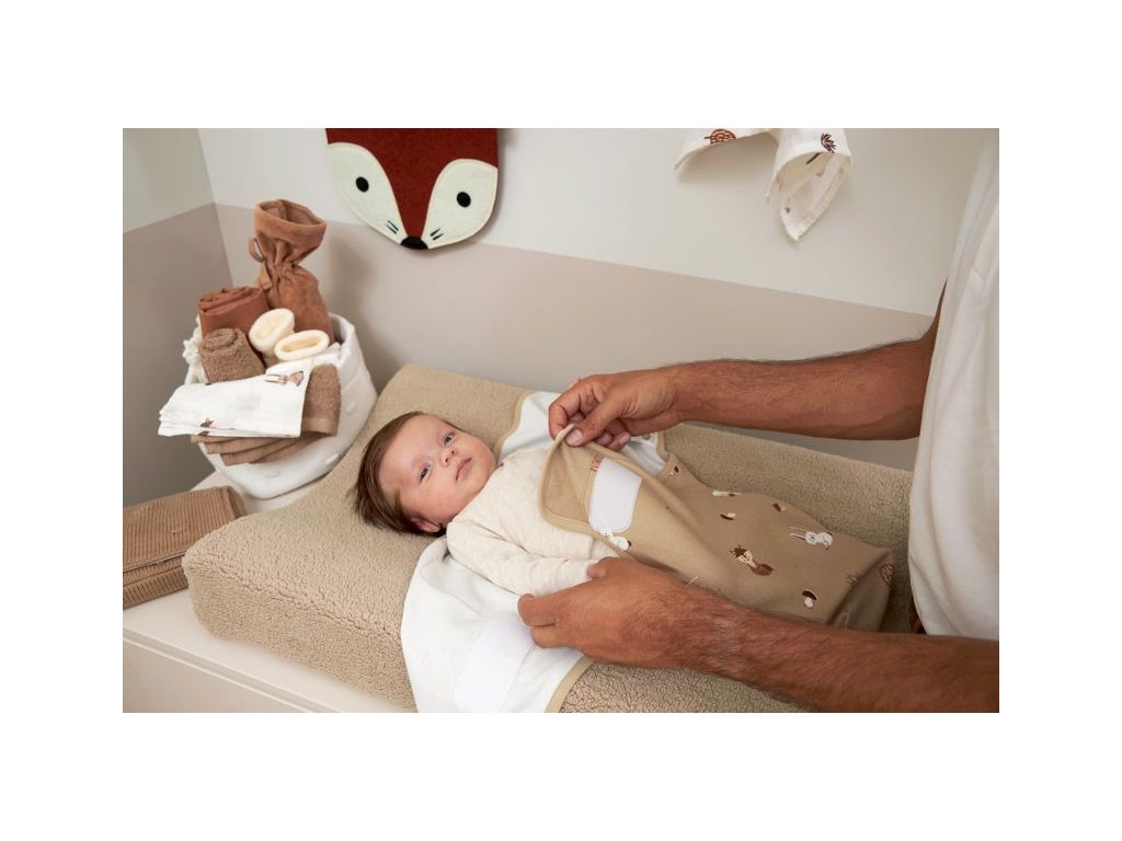 Ujistěte se, že jsou chlopně pevně uchyceny, ale neomezujte své dítě úplně. Nejlepší je mít ruce natažené podél těla a miminko při zavinování vždy pokládat na záda.