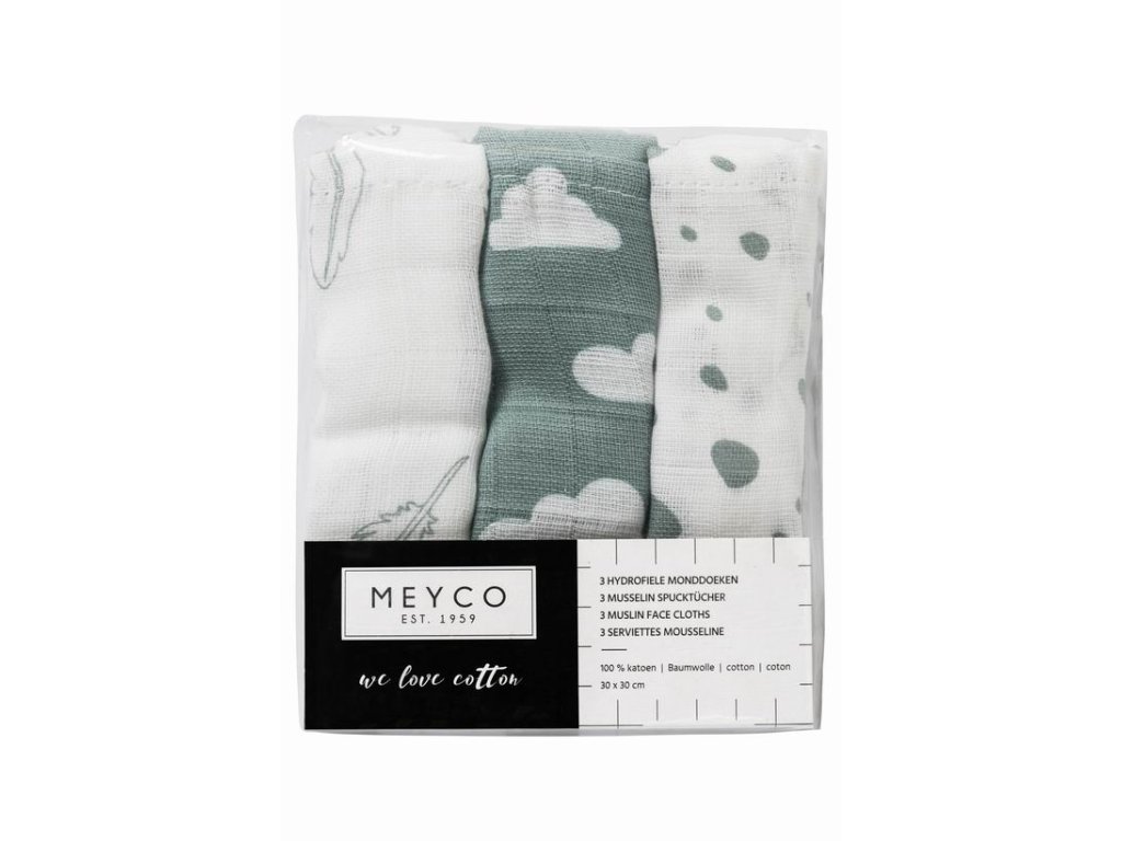 Meyco Plena-žínka Feathers-clouds-dots stone green/white