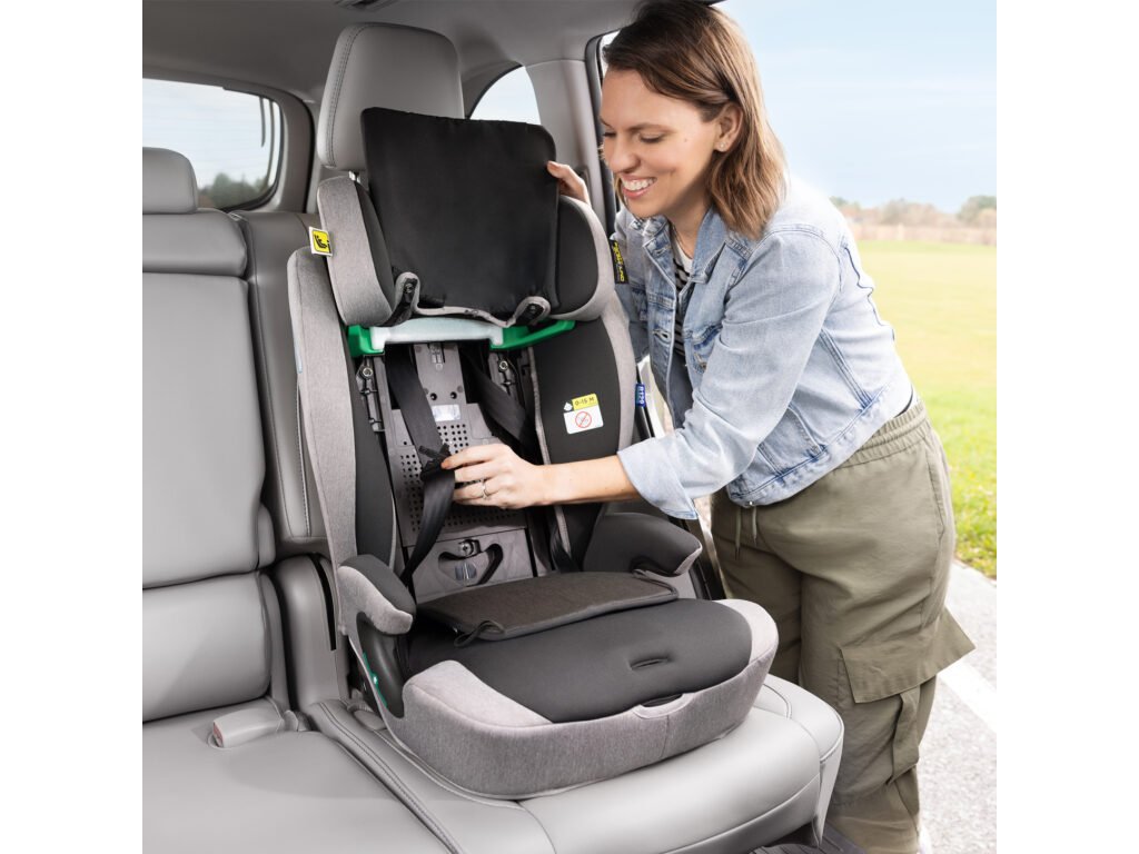 Komfortní - Autosedačka nabízí pohodlí díky polstrování z paměťové pěny, vestavěné ventilaci pro celoroční pohodlí a 15polohové opěrce hlavy nastavitelné jednou rukou spolu s výškou pásů. Nechybí ani měkce polstrované opěrky rukou a snadné uschování pásů, když už nejsou potřeba.