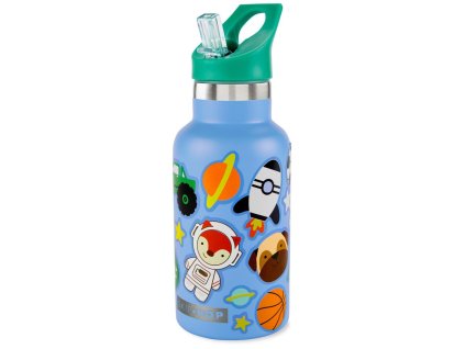 SKIP HOP Láhev s nálepkami se slámkovým náústkem nerezová modrá 380 ml, 4r+