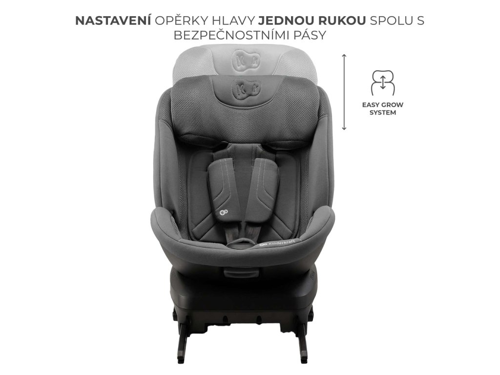 EASY GROW SYSTEM umožňuje snadné nastavení opěrky hlavy a popruhu jedním pohybem, čímž se autosedačka přizpůsobí rostoucímu dítěti. Autosedačka s 11 úrovněmi nastavení zajišťuje pohodlí a bezpečnost.