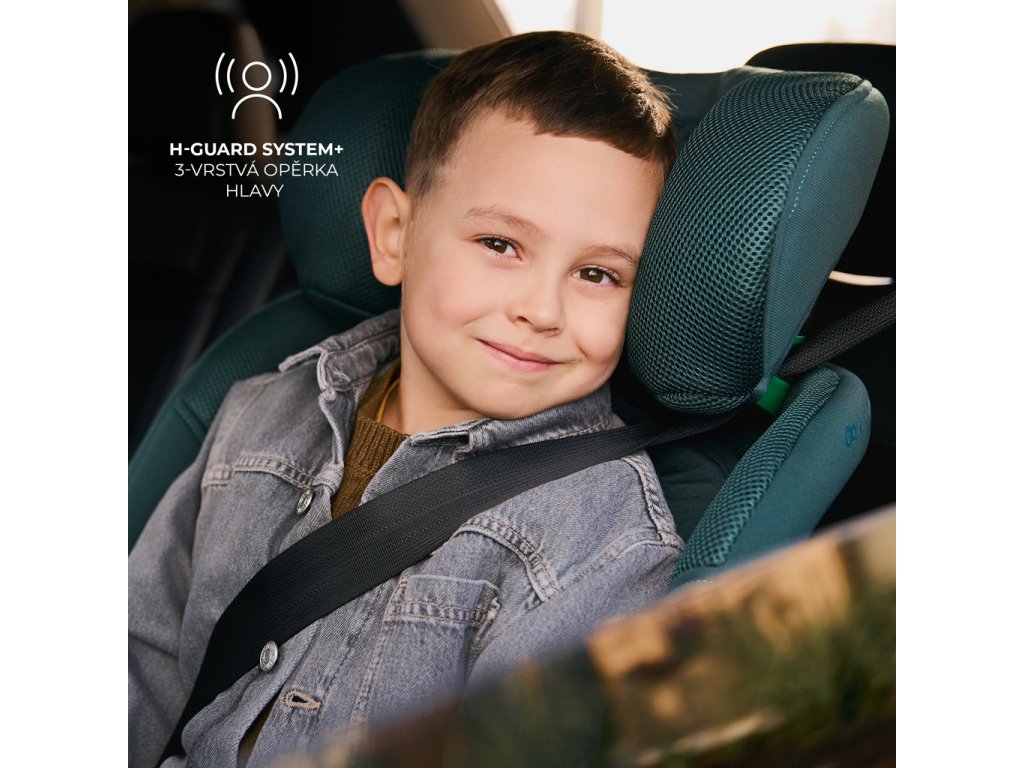 XRIDER 2 i-Size účinně chrání vaše dítě během cestování. Systém H-GUARD+ je zesílená 3-vrstvá opěrka hlavy s dodatečnou paměťovou pěnou. Kombinace těchto dvou materiálů posiluje vlastnosti opěrky hlavy: paměťová pěna se ani po mnoha letech používání nedeformuje, zachovává si pružnost a elasticitu po celou dobu používání autosedačky. Systém H-GUARD+ absorbuje sílu nárazu vznikající při bočních kolizích, čímž účinně chrání hlavu a ramena dítěte.
