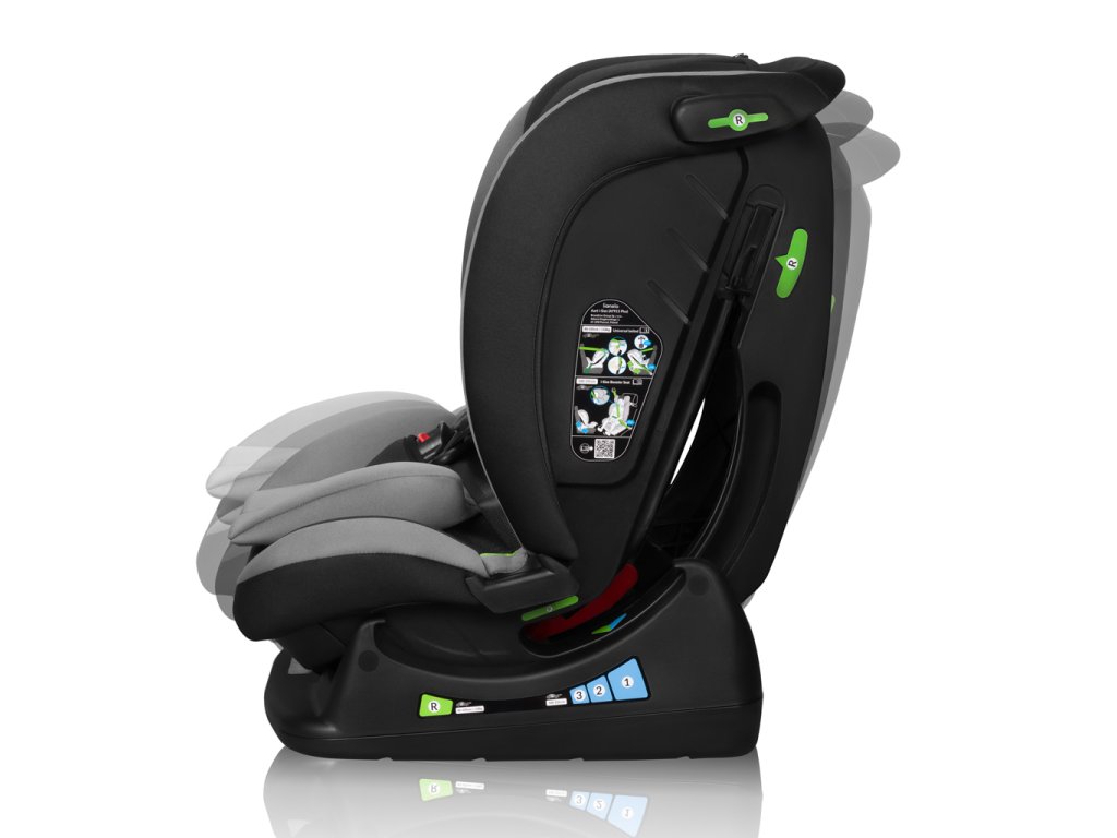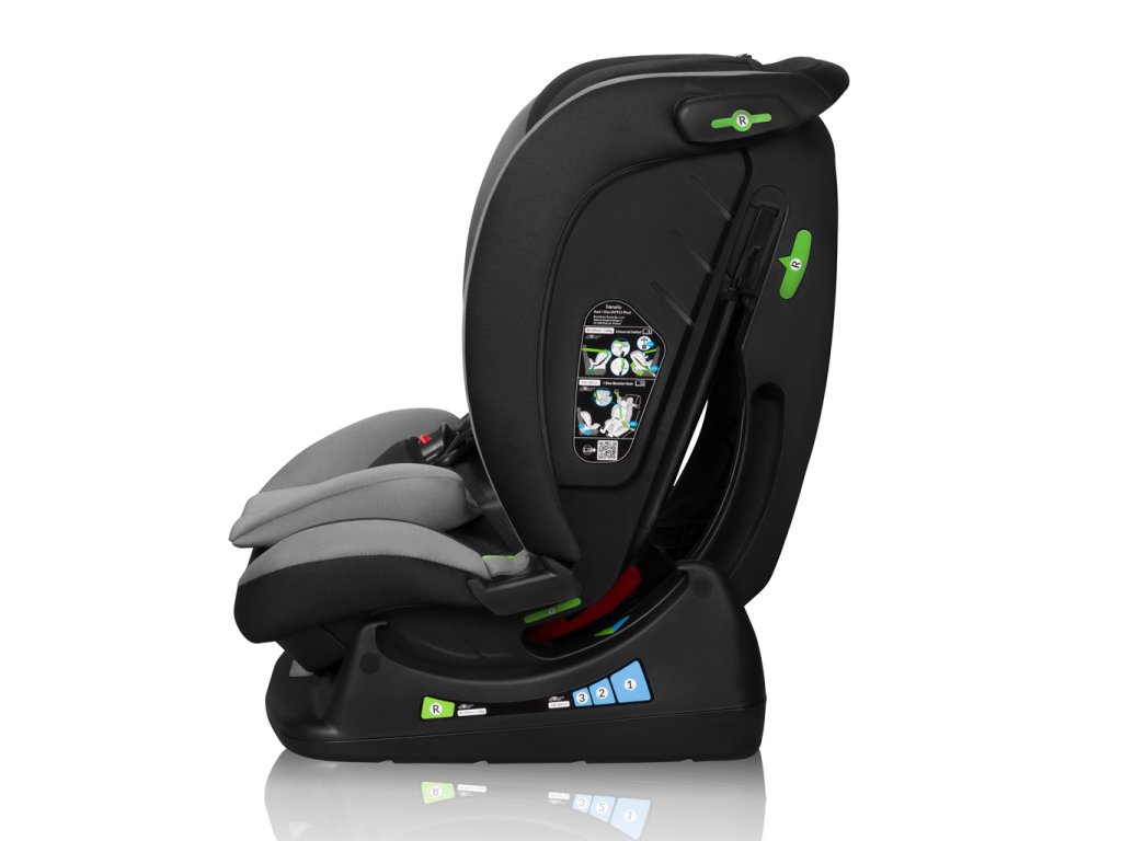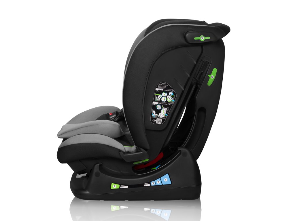 Bezpečnost: Prostorná opěrka hlavy vyztužená pěnou Memory Foam dokonale absorbuje přetížení, chrání hlavu a krční páteř. Použití moderních materiálů, jako je polypropylen a sklolaminát, ovlivňuje pevnost celé konstrukce. Masivní tělo autosedačky poskytuje nejvyšší úroveň bezpečnosti.