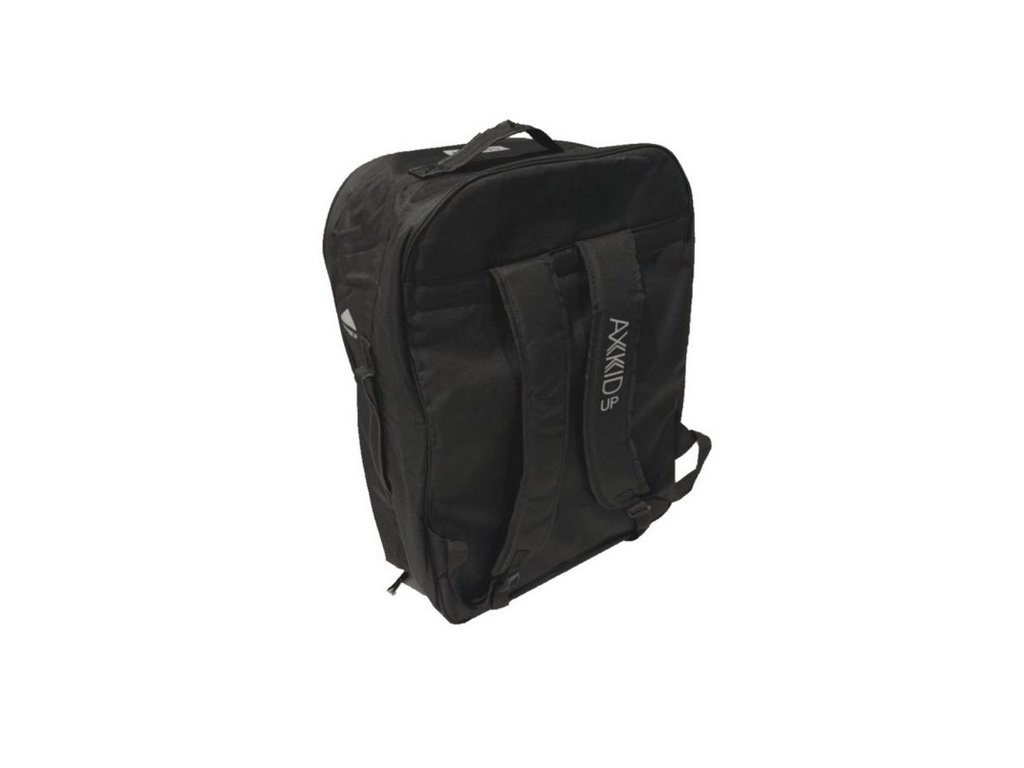 Batoh je přizpůsoben tak, aby dokonale pasoval na složený Axkid Up™, a zajišťuje tak snadnou přepravu a kompaktní skladování. Díky polstrované ochraně proti nárazu a vodotěsnému zipu udržuje přepravní taška autosedačku Axkid Up v bezpečí a ochraně během přepravy.