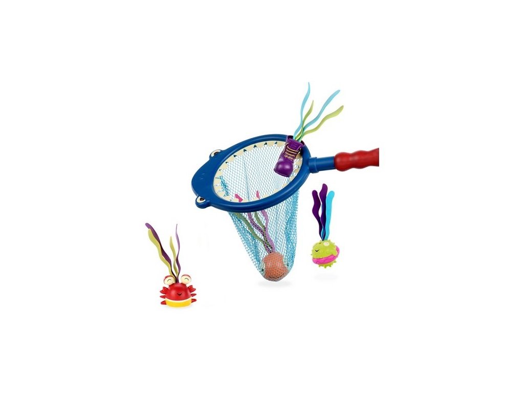 Potápějí se vaše dětí rády? Pak budou nadšené z tohoto originálního podběráku ve tvaru žraloka a čtyř hraček pro potápění. Vhoďte hračky na dno bazénu a pokuste se je vylovit podběrákem nebo chytit rukou za vlající pásky.