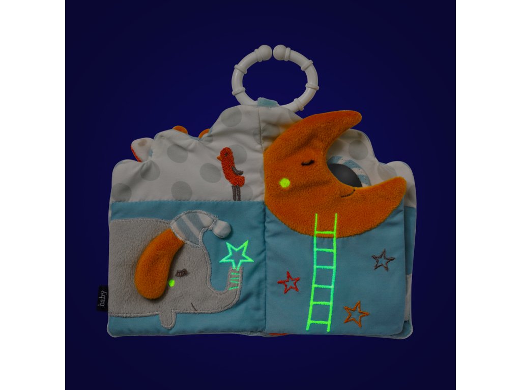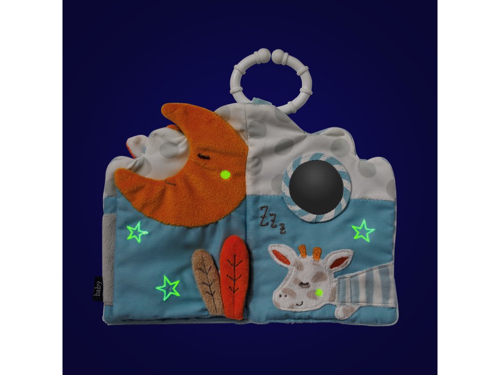 Součástí jsou svítící prvky, které pomohou dítěti rozptýlit strach ze tmy. Díky praktickému poutku lze knížku upevnit na kočárek, autosedačku či postýlku.