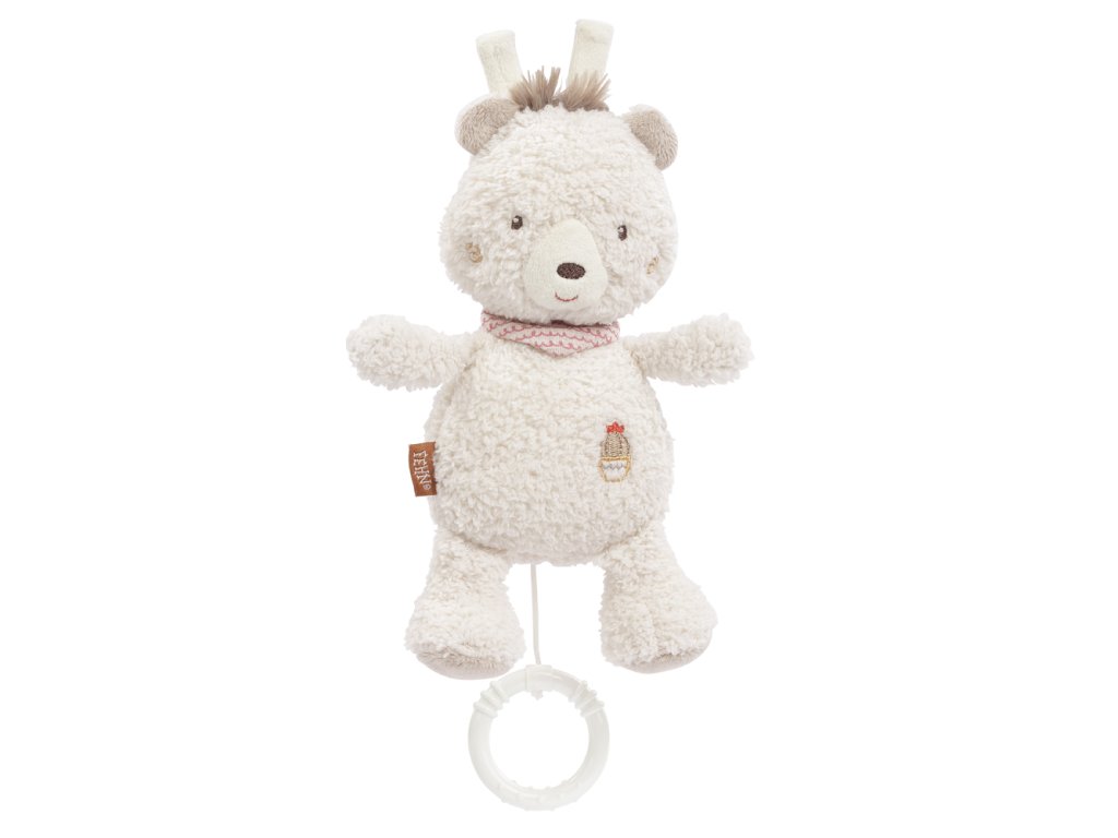 Plyšový méďa s hracím strojkem, který se spouští zatažením za kroužek. Strojek lze vyjmout, hračka má zip. Příjemné tlumené barvy, a měkký materiál, to vše vybízí k mazlení a dítě uklidňuje. Díky dvěma páskům hračku rychle připevníte na kočárek, dětské sedačky a dětskou postýlku