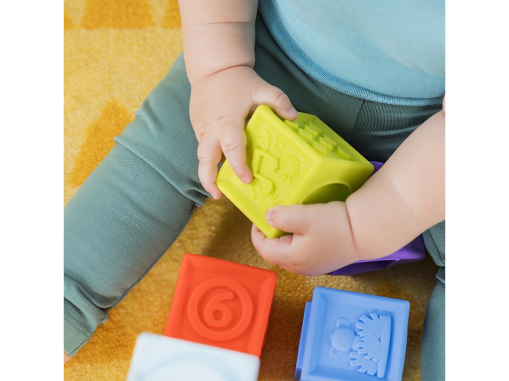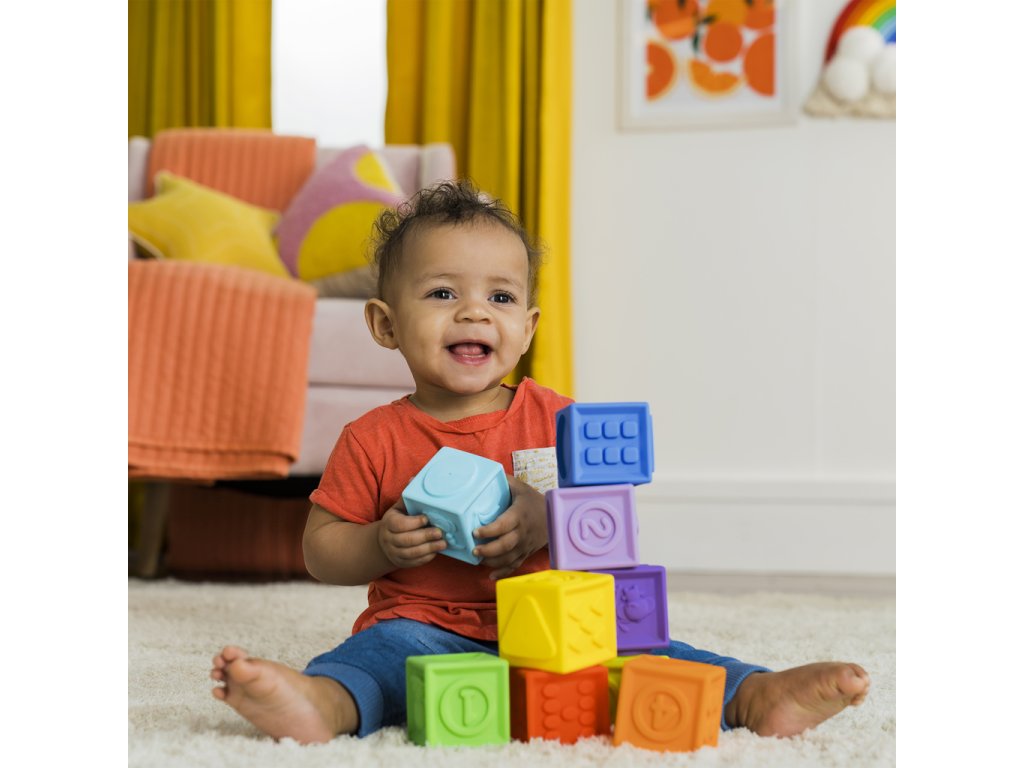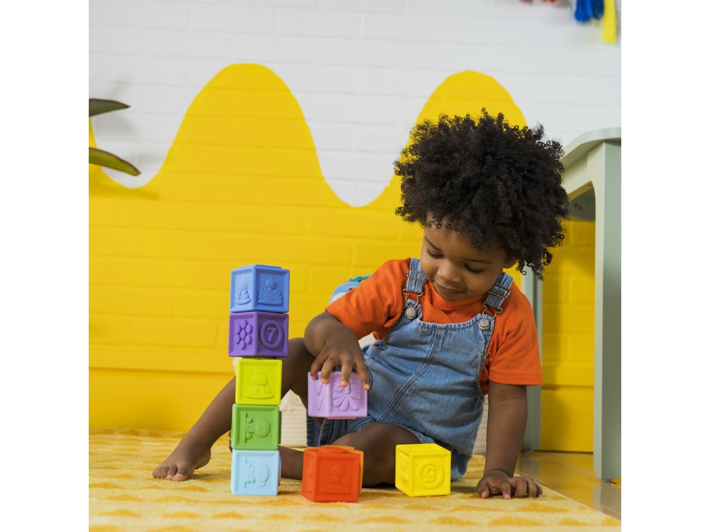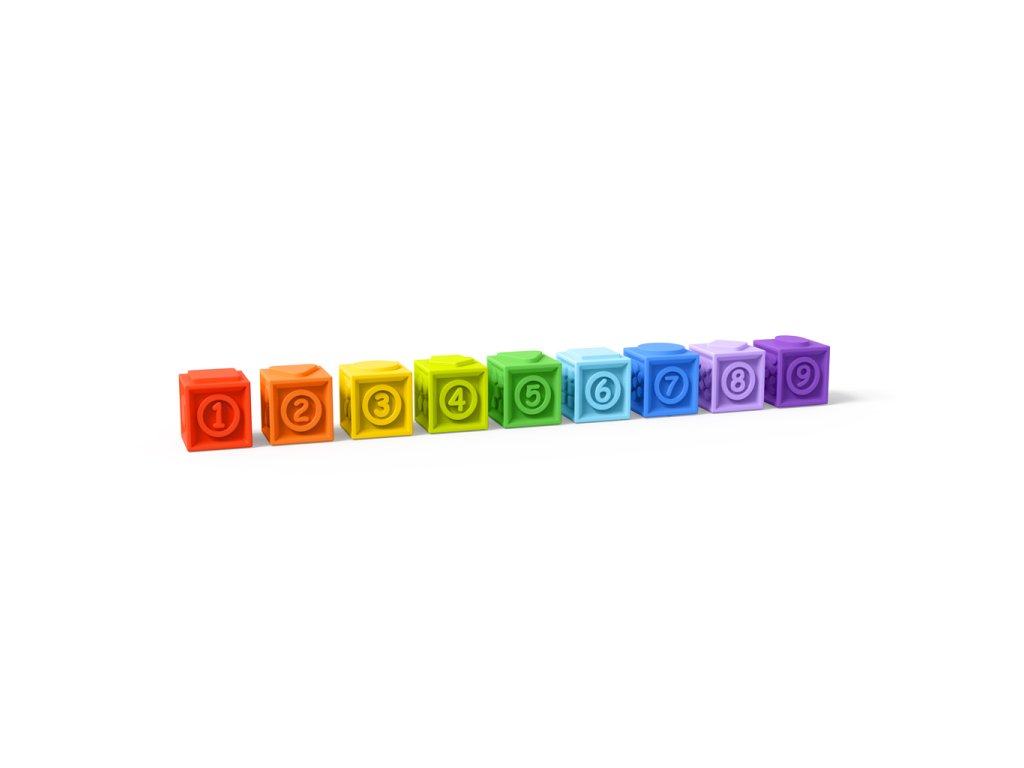 Nezáleží jestli si děťátko bude hrát doma, na cestách nebo ve vodě. Set 9 barevných stohovacích kostek mu bude dělat zábavnou společnost ať je kdekoli. Kostky jsou snadno stlačitelné v poutavých duhových barvách a v ideální velikosti do dětských rukou. Procvičte si počítání spojováním a ukládáním kostek v pořadí podle čísel. Je to tak jednoduché jako 1,2,3! Zvířata, čísla a barvy vytvářejí spoustu možností ke hraní ať už pro samo děťátko nebo s kamarády či rodiči.