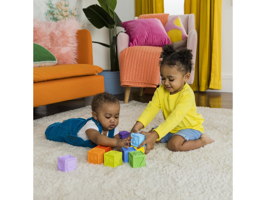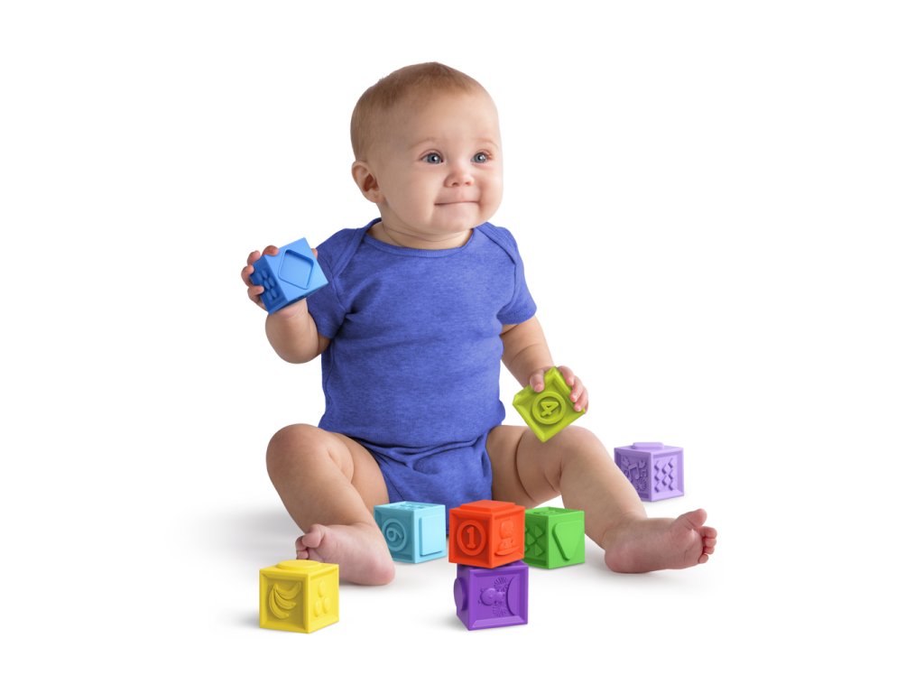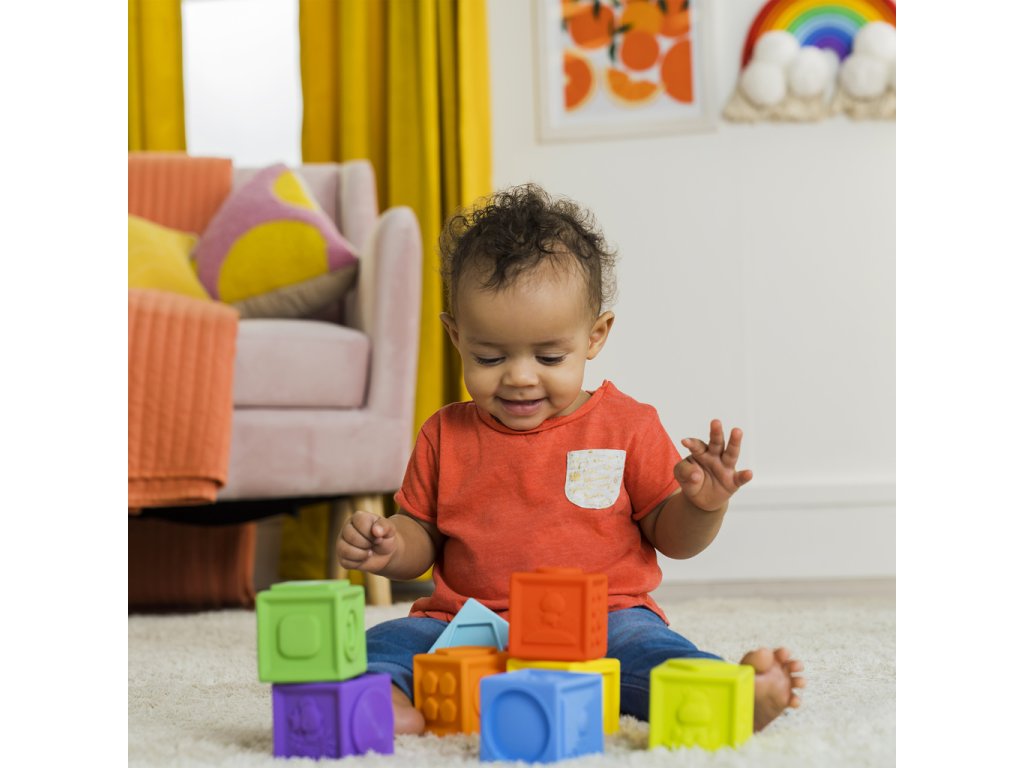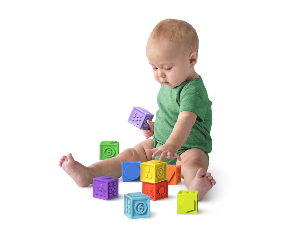 Nezáleží jestli si děťátko bude hrát doma, na cestách nebo ve vodě. Set 9 barevných stohovacích kostek mu bude dělat zábavnou společnost ať je kdekoli. Kostky jsou snadno stlačitelné v poutavých duhových barvách a v ideální velikosti do dětských rukou. Procvičte si počítání spojováním a ukládáním kostek v pořadí podle čísel. Je to tak jednoduché jako 1,2,3! Zvířata, čísla a barvy vytvářejí spoustu možností ke hraní ať už pro samo děťátko nebo s kamarády či rodiči.