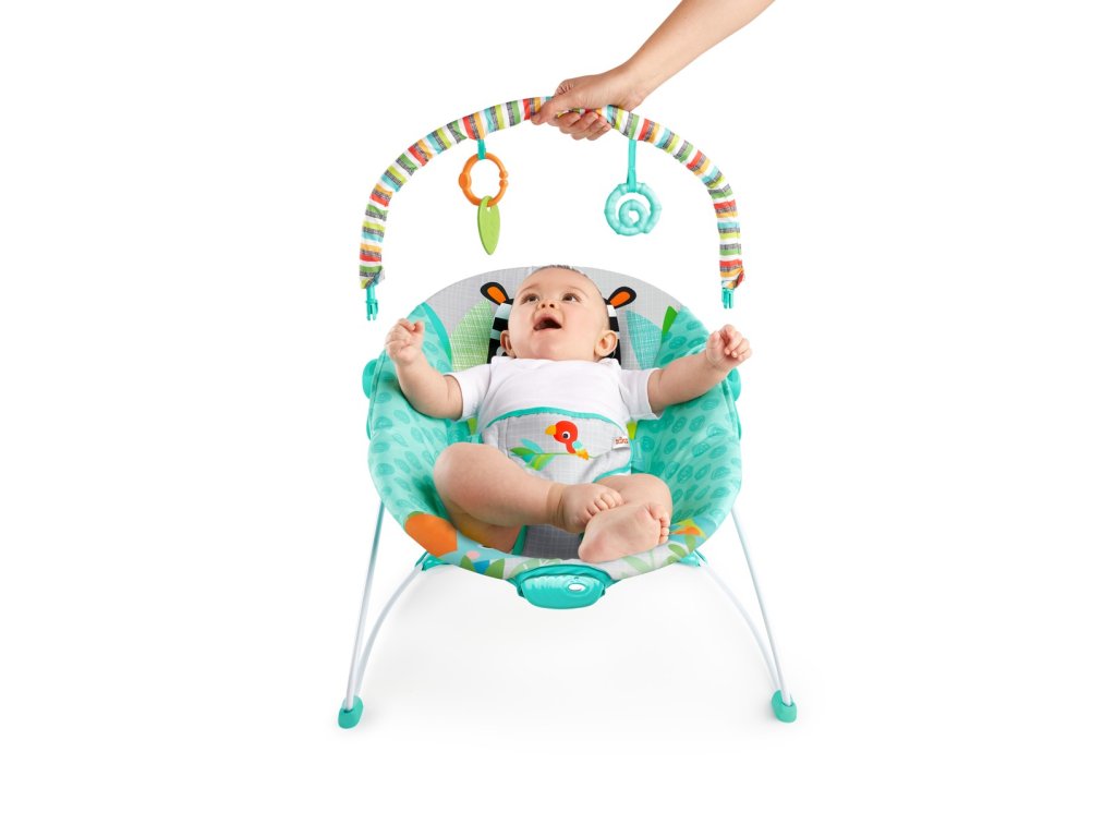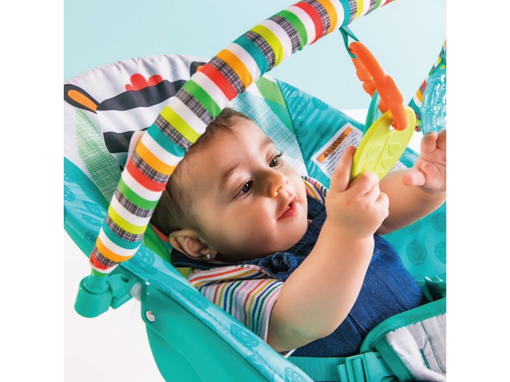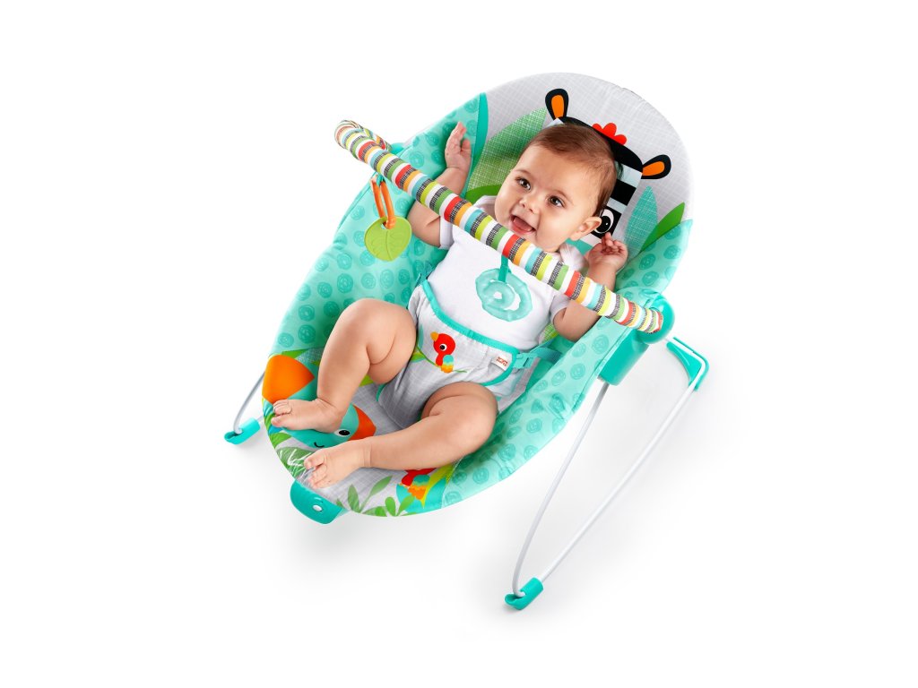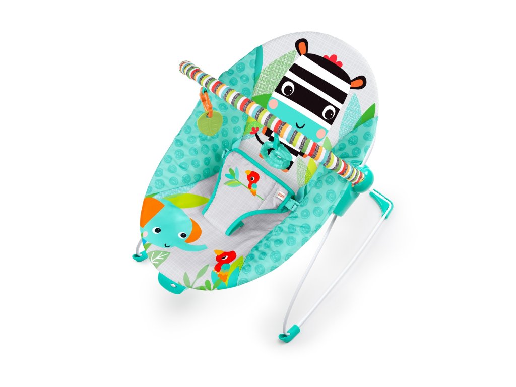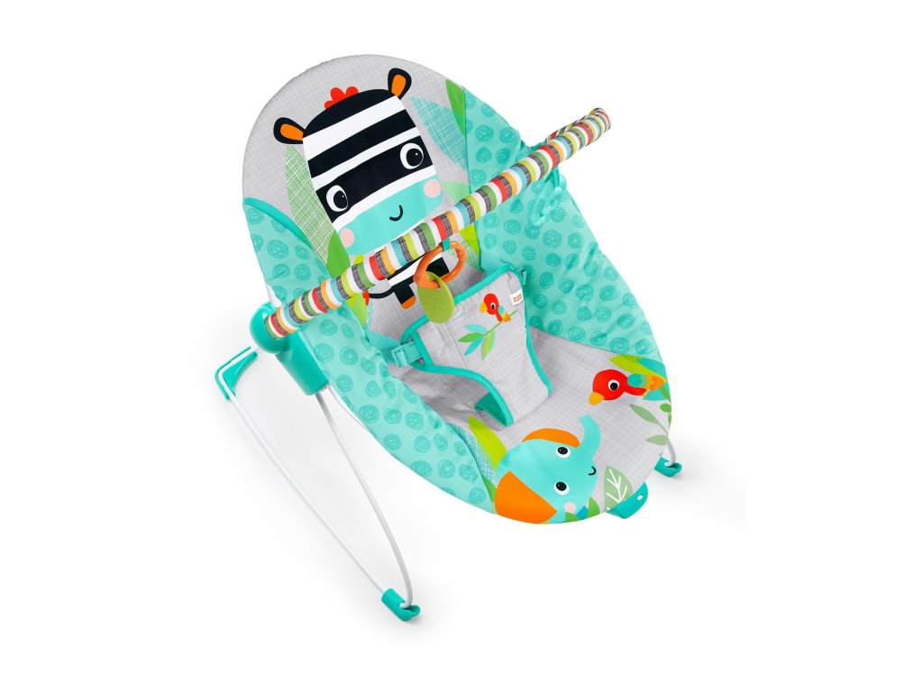 Zábava v plném proudu! Lehátko Zig Zag Zebra od značky Bright Starts představuje jedinečný hrací prostor s okouzlujícími interaktivními hračkami. Jemné a pohodlné tkaniny s veselými motivy zajistí, že děťátko se bude cítit příjemně a uklidněné. Odnímatelná hrazdička umožňuje rychlý přístup k dítěti. Uklidňující vibrace pomáhají děťátko udržovat šťastné a spokojené. Lehátko má jednoduchou montáž, nepotřebujete žádné nástroje. Stejně obsahuje 3-bodový nastavitelný bezpečnostní pás a protiskluzové nožičky. Sedací část se snadno udržuje v čistotě, možnost prát v pračce.