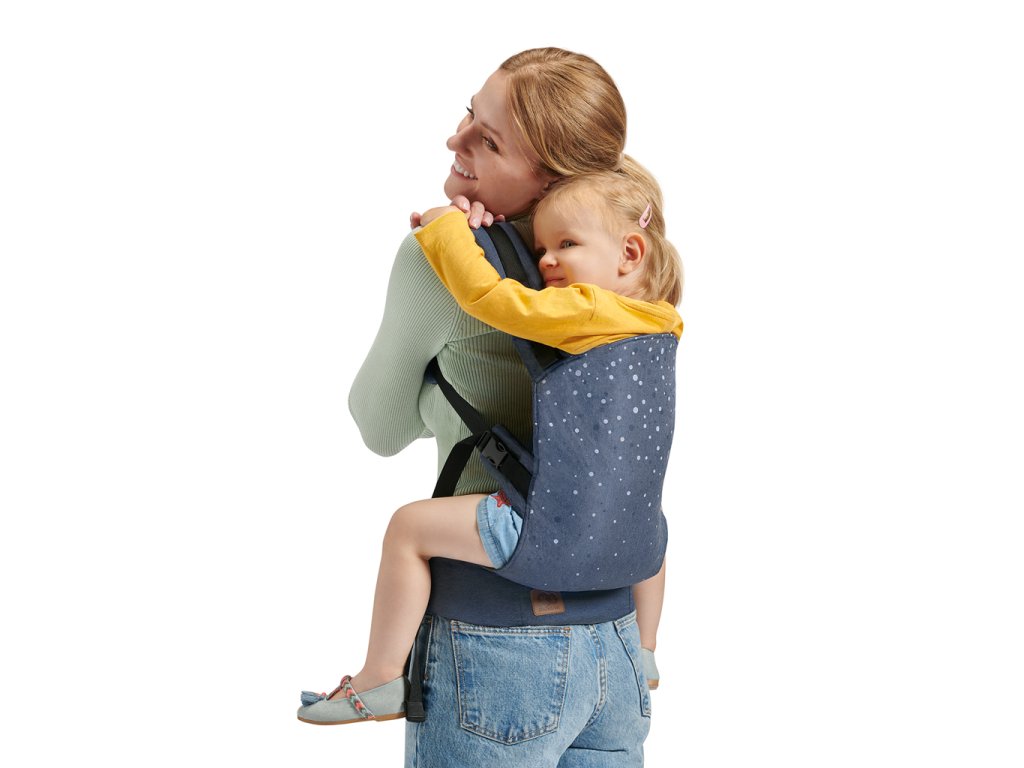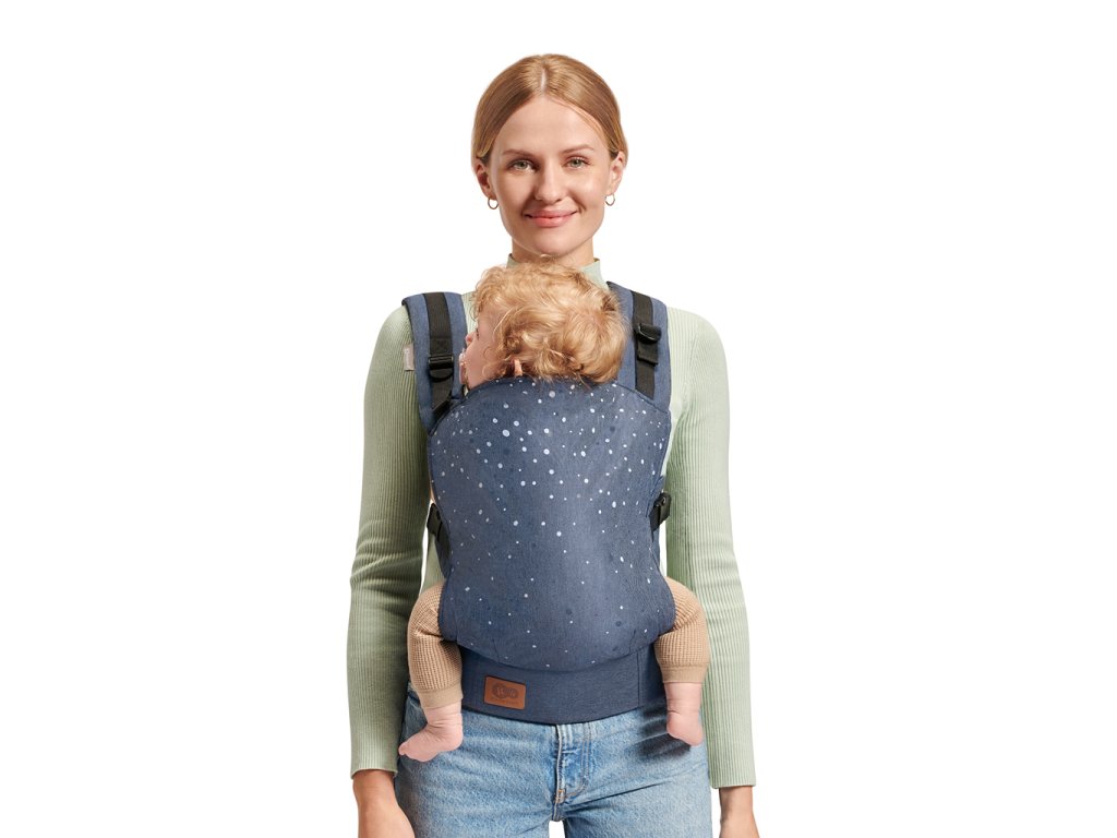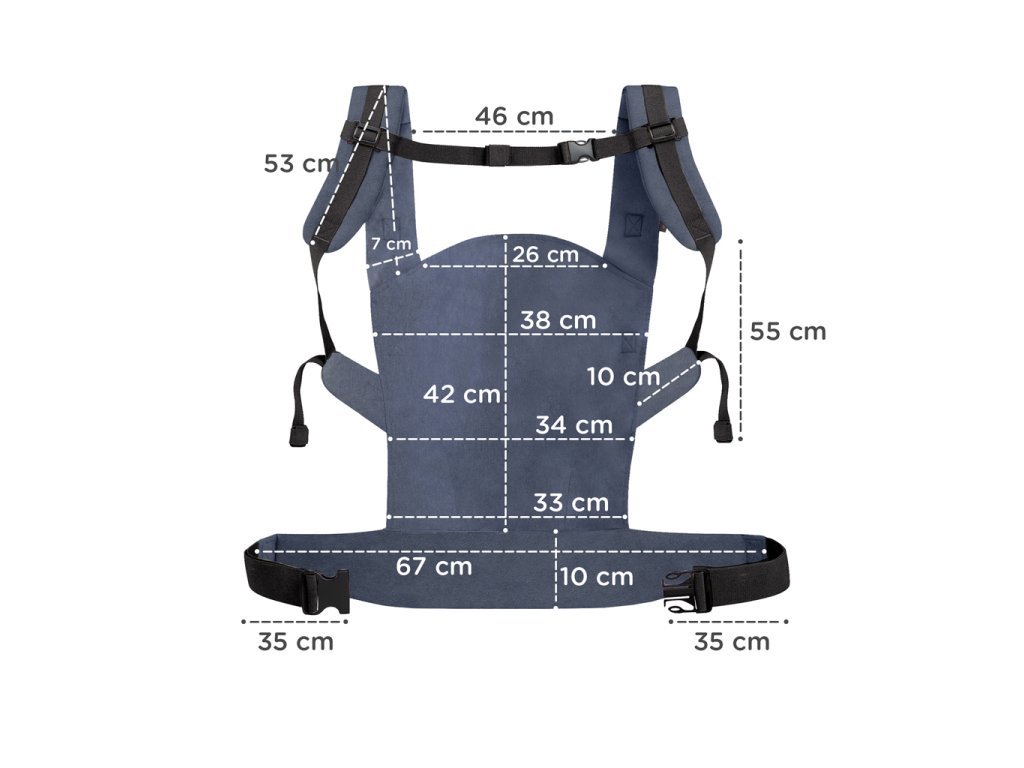 - Možnost nastavení ramenních pásů, vzdálenosti mezi nimi a šířky bederního pásu umožňuje přizpůsobit nosič podle nošeného dítěte a nosící osoby. Spona, která spojuje ramenní pásy, lze přesouvat nahoru nebo dolů, což rodiči usnadňuje samostatně zapnout a odepnout nosič.