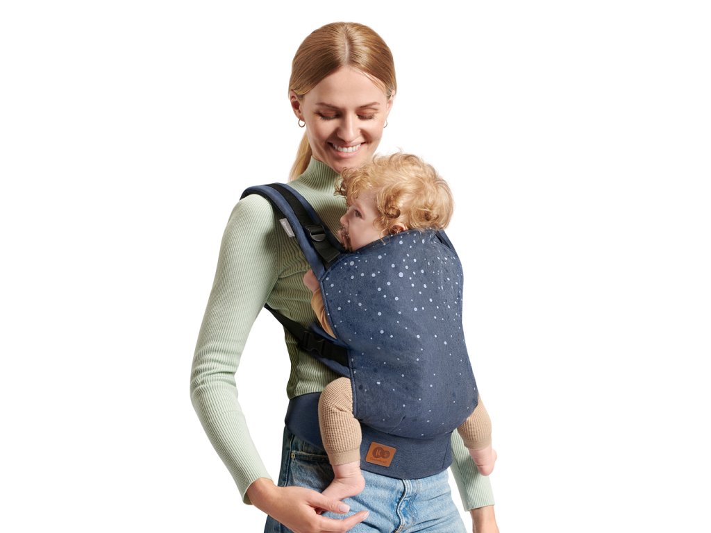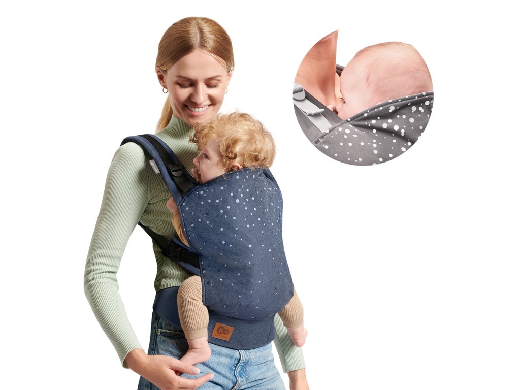 - Nosič je vybaven inovačním panelem s možností plynulého nastavení. Výšku panelu nosiče lze libovolně, plynule nastavit, aby se dítěti zajistila ergonomická, útulná poloha.