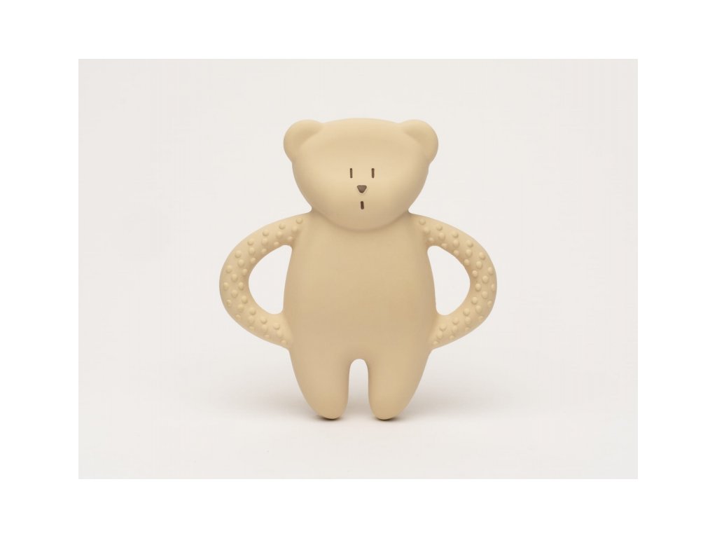 Kousátko MOONIE podobě roztomilého medvídka z přírodního kaučuku bylo pečlivě navrženo tak, aby zklidnilo bolavé dásně během prořezávání zoubků a zároveň poskytovalo bezpečný a příjemný smyslový zážitek. Tvar a velikost kousátka umožňují snadné držení malými dětskými ručičkami, různorodé textury lákají dítě ke zkoumání. Hračka je ručně malovaná netoxickými potravinářskými barvami.