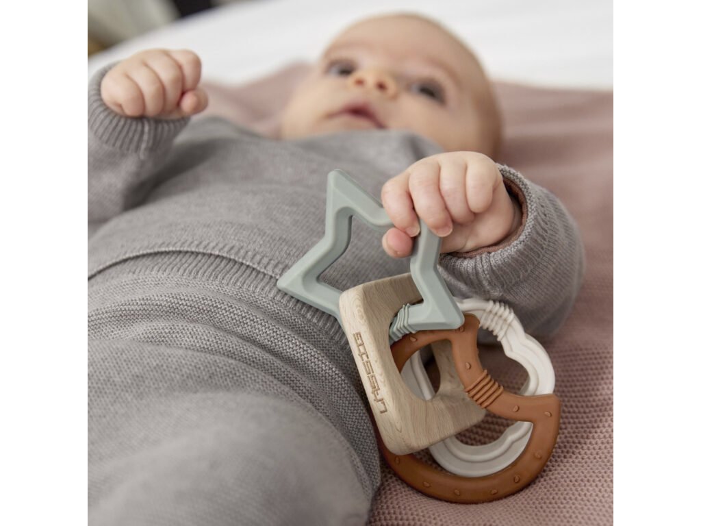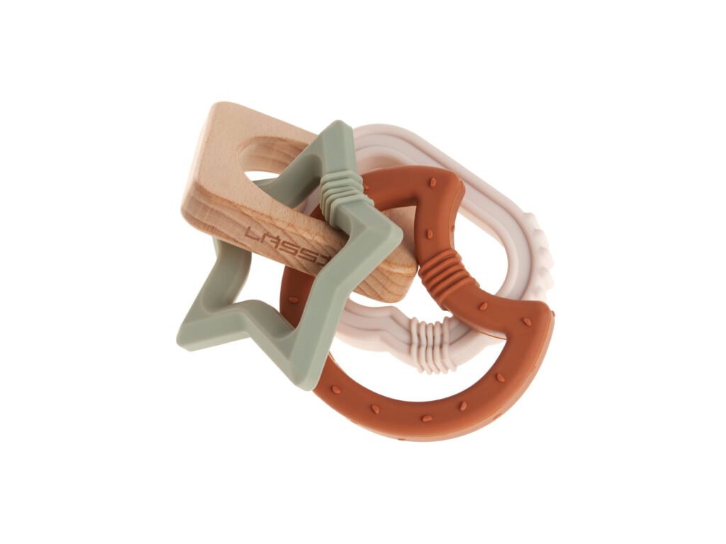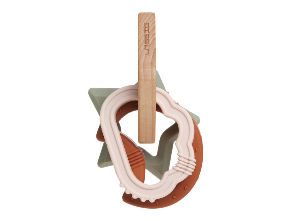 Teether Wood/Silicone Little Universe je jedním z dalších výrobků značky Lässig, vyznačujícím se vysokou kvalitou materiálů, jejich zpracováním a svojí funkčností. Jedná se o perfektní kombinaci kousátka a hračky, vyrobené ze dřeva a silikonu.
