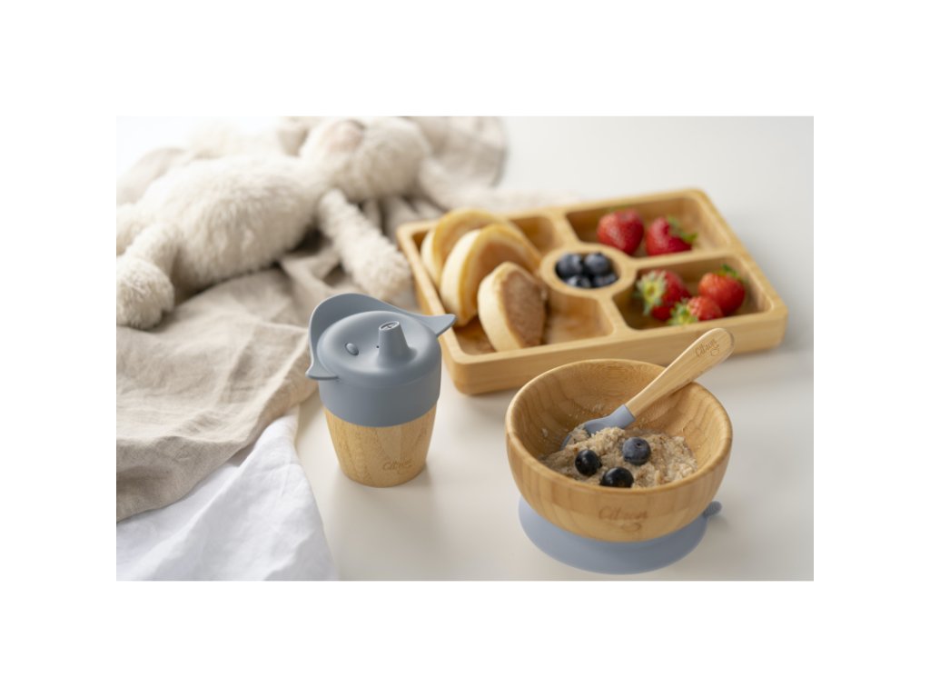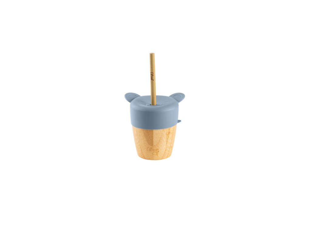 Citron Bambusový hrneček s pítkem a brčkem - Dusty Blue