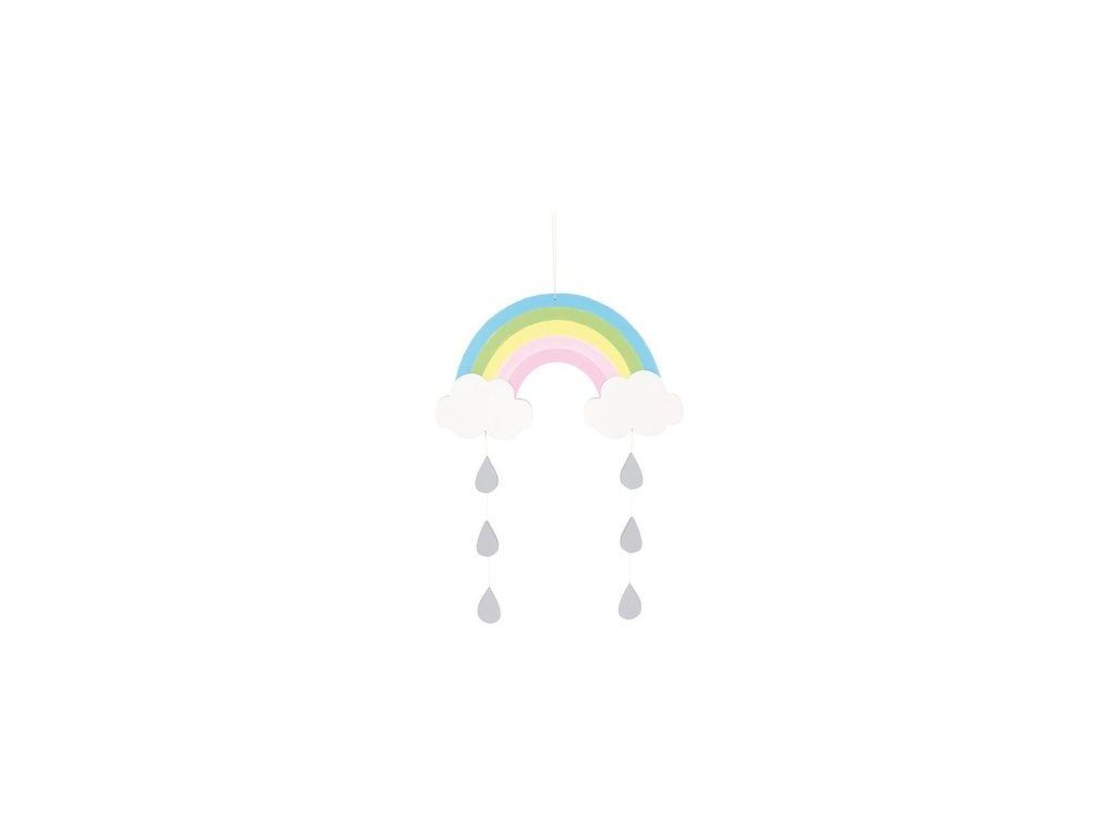 Závěsná dekorace Lehce zavěsitelná dekorace do dětského pokoje nebo nad postýlku Jemné pastelové barvy s bílými mraky a „pršícími“ kapkami Pomáhá dětem sledovat pohyb očima a vnímat barvy – vizuální stimulace Plochý design vhodný i do okna nebo na stěnu Není hračka – dekoraci umístěte mimo dosah dítěte Technické parametry Rozměry: 29 × 0,5 × 41 cm Materiál: dřevo a textil Doporučený věk: od 3 let Bezpečnost: odstranit, jakmile se dítě začne zvedat a sahat na části dekorace Všechny produkty JaBaDaBaDo jsou testovány podle evropských bezpečnostních norem