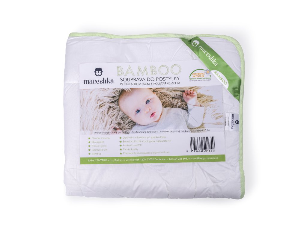 Souprava peřinek do postýlky Maceshka Bamboo. Antibakteriální, antialergické.