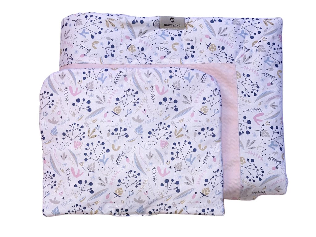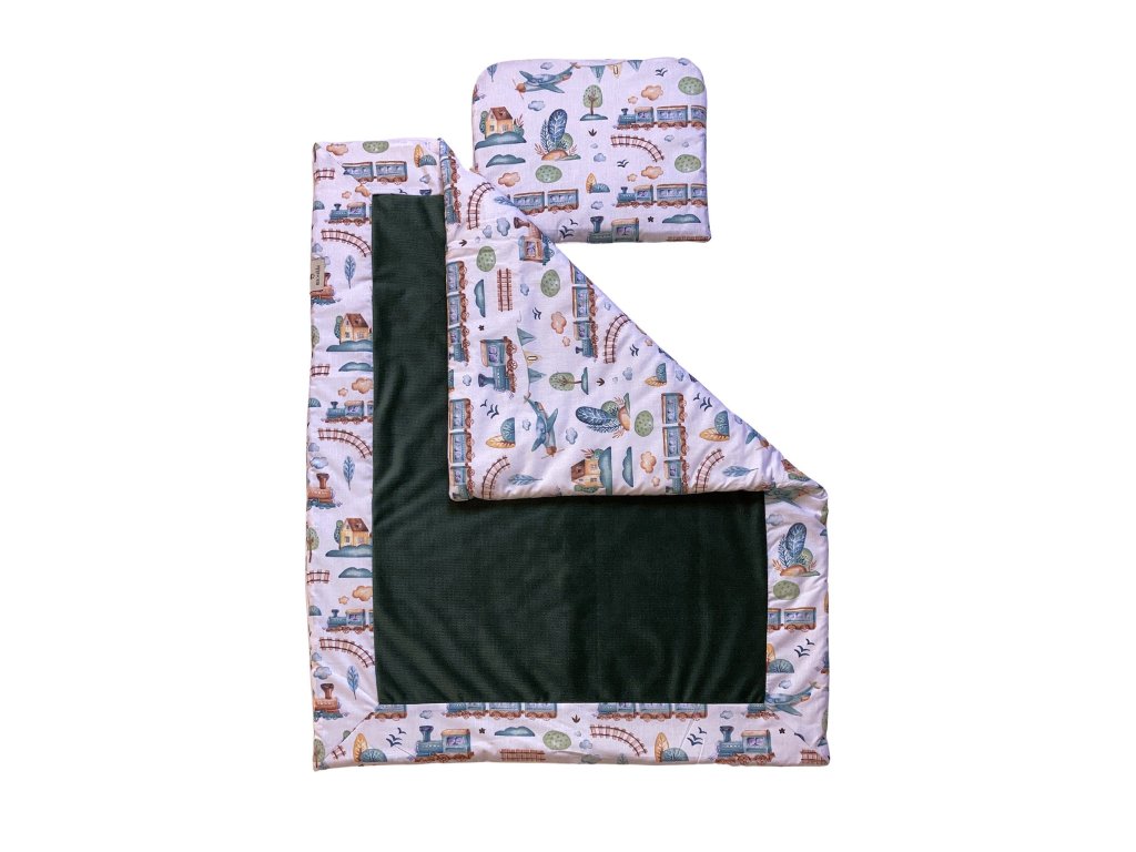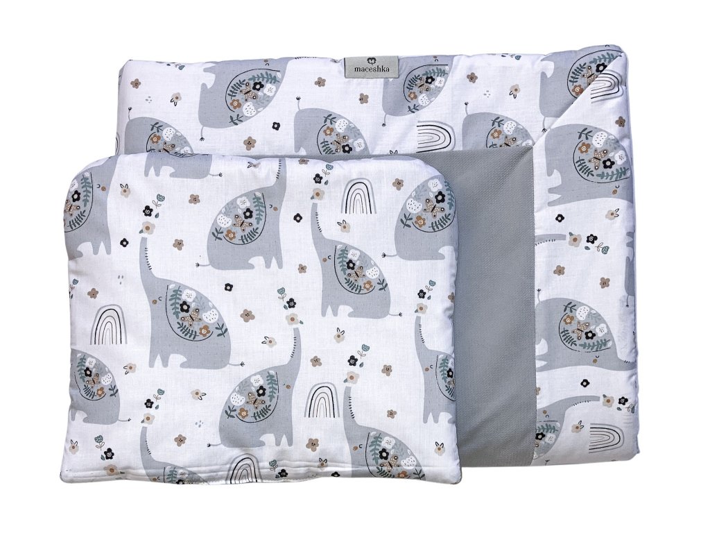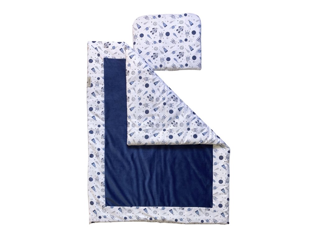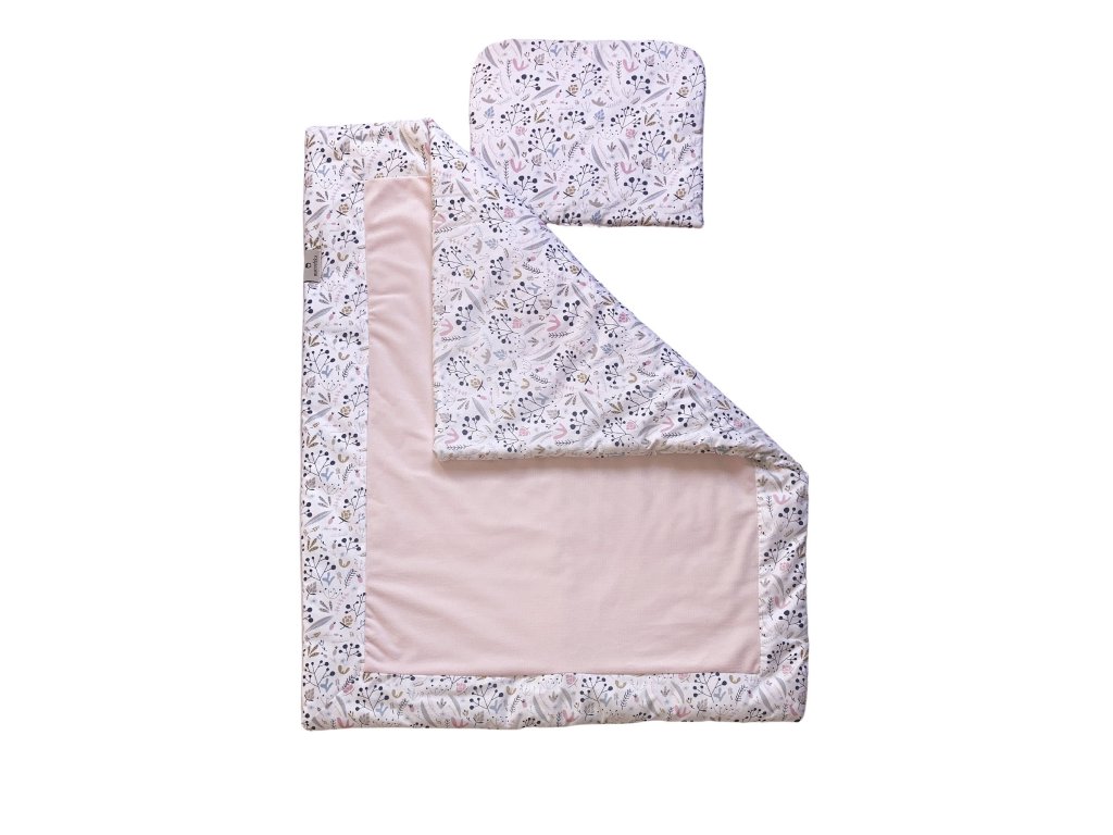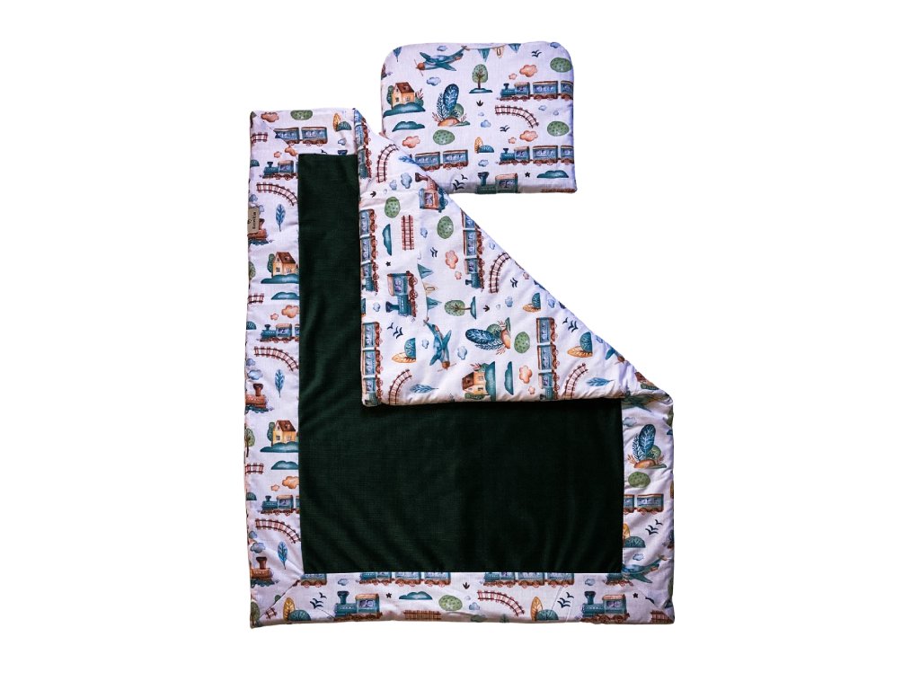 Set obsahuje polštářek a peřinku, oboje vyplněno antialergickým vláknem. Potah soupravy je v kombinaci 100% bavlny a velvetu (jemný krátký samet). Potah není možné sundat. Celá souprava se dá vyprat na 40°C, díky čemuž se lépe udržuje hygienická čistota pro vaše nejmenší.