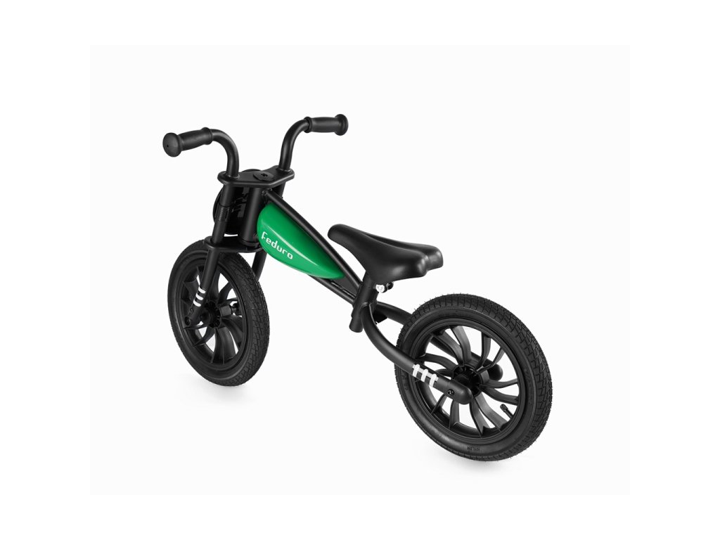 Blokace proti nadměrnému otočení řídítek a ložisková kola zvyšují bezpečnost. Protiskluzové rukojeti s ochrannými koncovkami chrání ruce před odřením. Tvarované a měkce polstrované sedátko nabízí pohodlí na každé vyjížďce. FEDURO je ideální pomůcka pro nácvik rovnováhy před jízdou na kole s pedály.