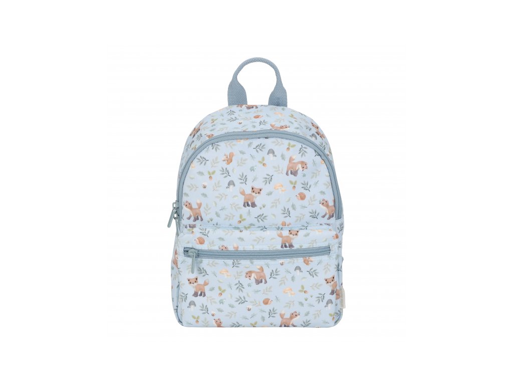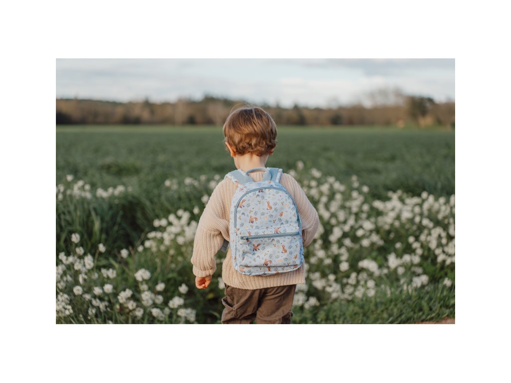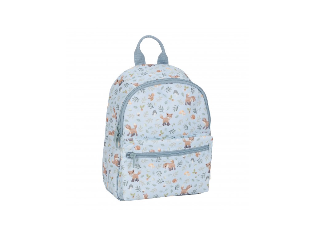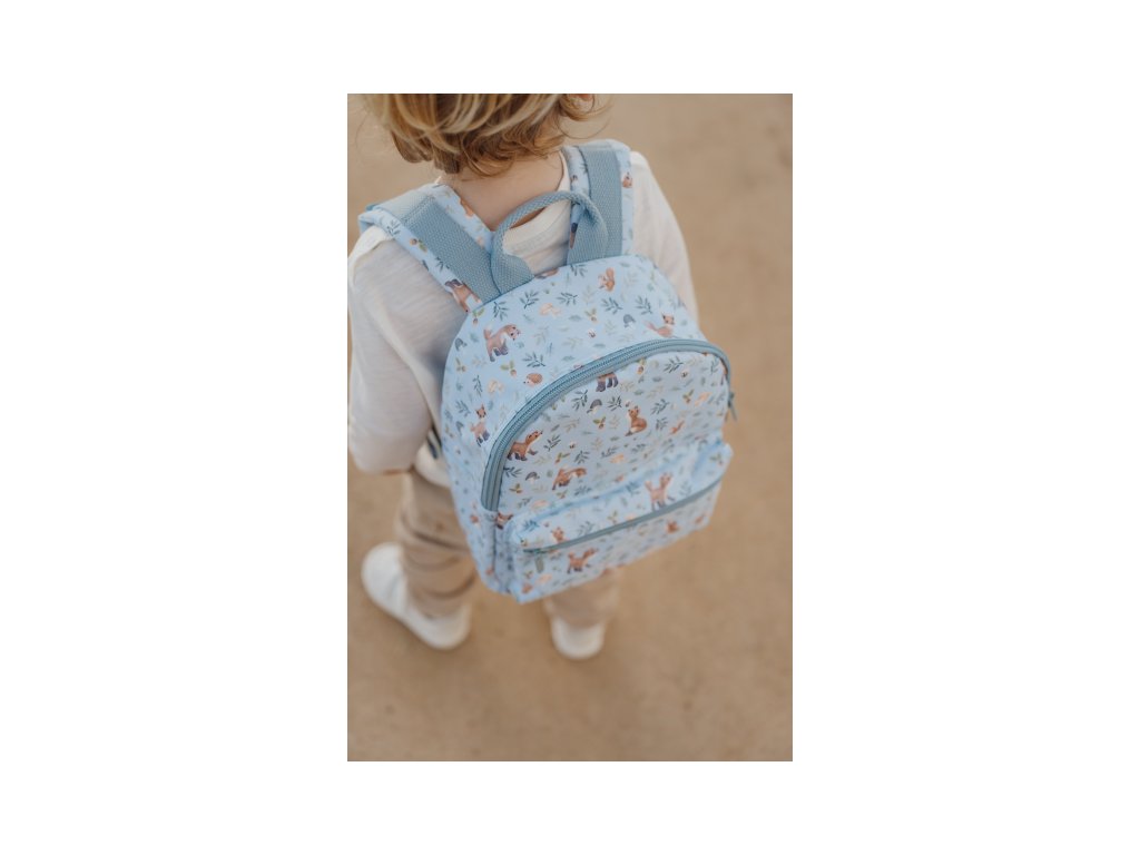 Roztomilý dětský batůžek potištěný obrázky zvířátek a motivy ze života v lese je ideálním doplňkem na výlety do přírody i procházky městem. Batůžek má nastavitelné ramenní popruhy a hrudní pás pro příjemné nošení. Držadlo umožňuje přenášení v ruce. Batůžek je vybaven vnější kapsou na zip pro uložení drobností a vnitřní prostor s kapsou, elastickým držákem na pití a jmenovkou.