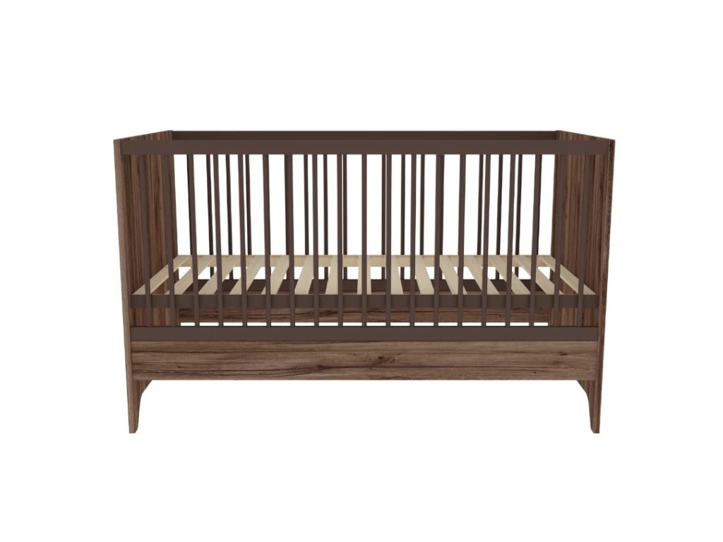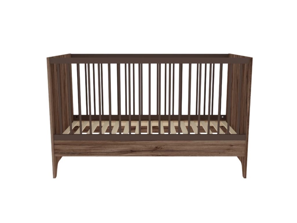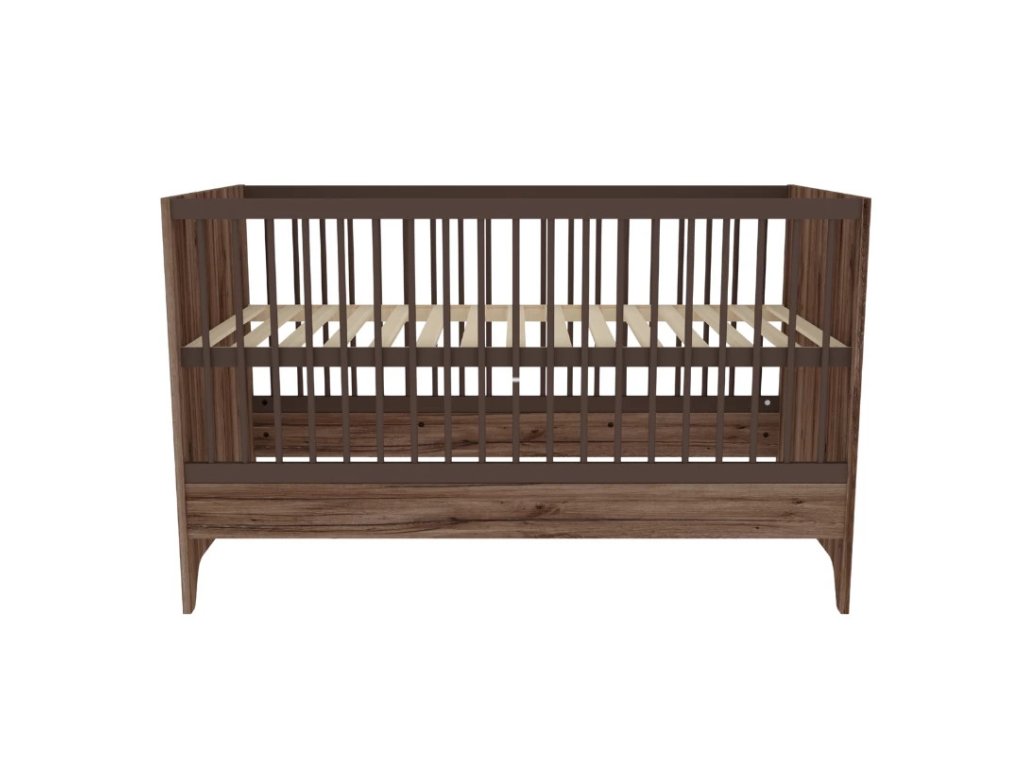 Dětská postýlka Nest Walnut 140x70cm je variabilní částí moderního dětského pokoje, která poslouží dítěti po dlouhou dobu. Povrchová úprava v odstínu tmavého ořechu je zdobena speciálním černým žilkováním, které dodává nábytku přírodní vzhled a charakter.
