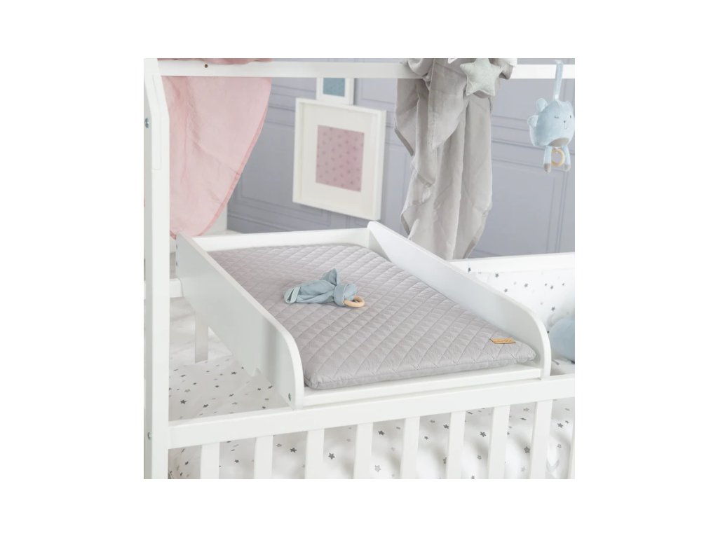 Jednoduchým umístěním na dětské postýlky o rozměrech 60 x 120 cm a 70 x 140 cm získáte přebalovací plochu přímo u dětské postýlky.