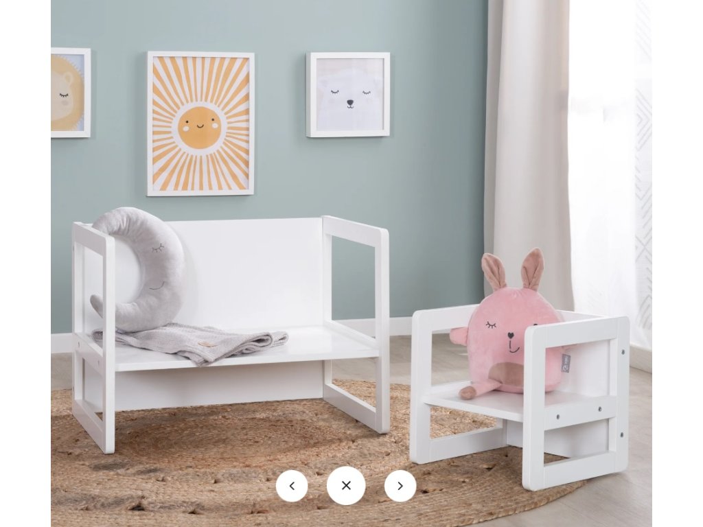 Lavici lze také otočením použít ve 2 různých výškách sedu (18 cm nebo 27,5 cm). (V x Š x H): 44 x 61 x 44 cm. Sedací souprava roba je robustně vyrobena a bude vaše dítě doprovázet několik let.