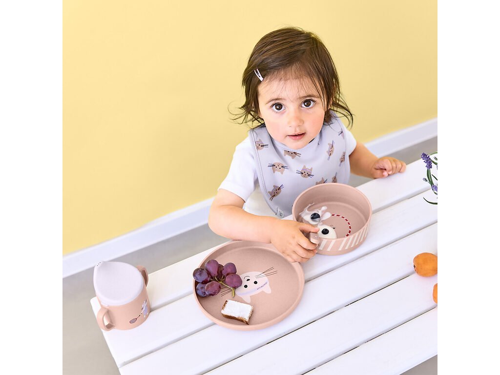 Dětské stolní nádobí v krásném designu, vyrobené za použití trvale udržitelných zdrojů, je určené pro děti od 12 měsíců.