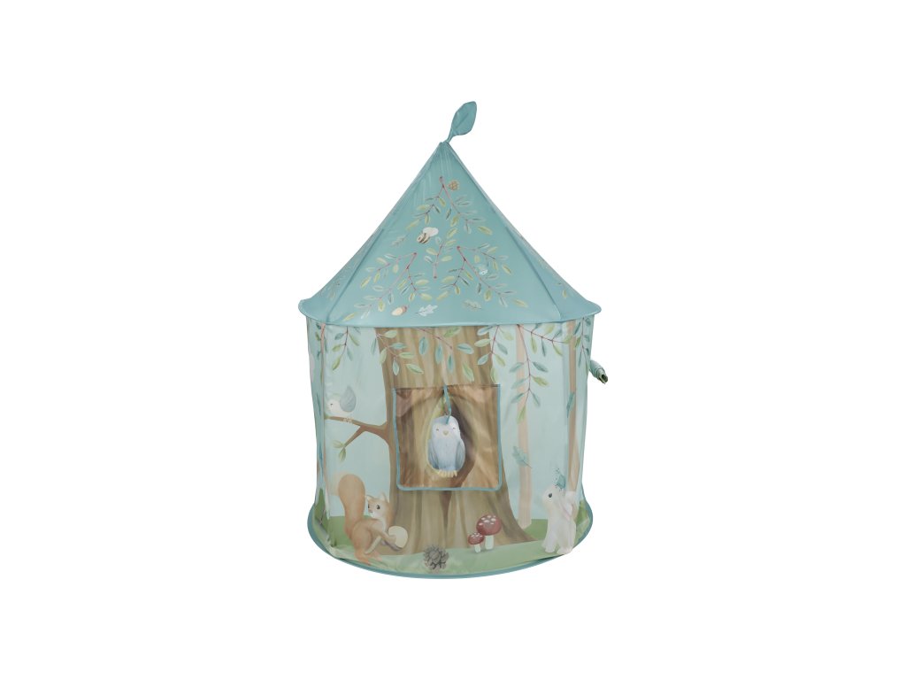 Úžasný stan je skvělým místem pro všechny děti, které mají rády schovávačky a svůj kouteček jen pro sebe. Stan s krásným potiskem motivů ze života v lese bude vděčným pomocníkem při hrách a rozvíjení fantazie vašich dětí. Stan je vybaven dvěma okénky a vchodovým závěsem.