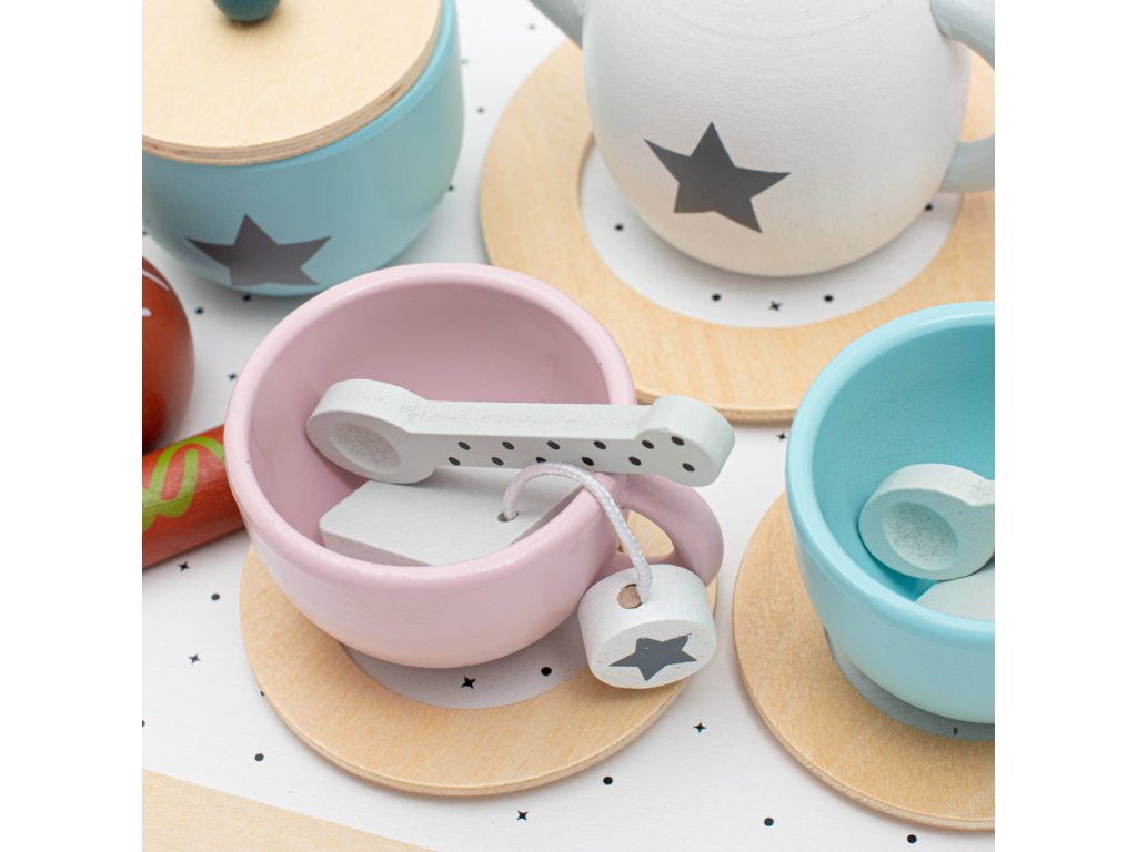 Díky dřevěnému provedení s pečlivým zpracováním a bezpečnými materiály je tento čajový set ideální pro hru „na dospělé“, pikniky v pokojíčku nebo servírování čaje plyšákům a panenkám. Set podněcuje představivost, rozvíjí sociální dovednosti a zároveň přirozeně zapojuje děti do kreativní hry.
