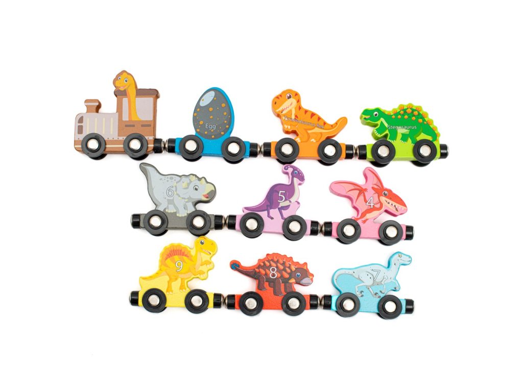 - Design: Barevné a detailní zpracování dinosaurů, včetně číselné řady na každém vagónku.