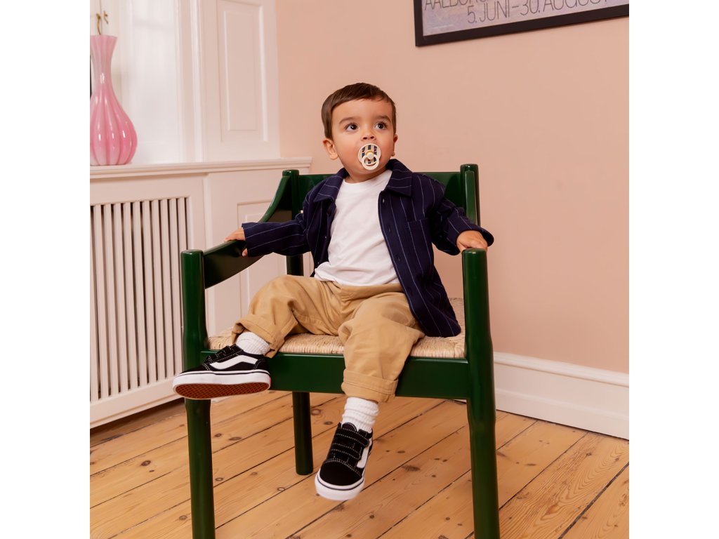 BIBS STUDIO Colour cumlíky z prírodného kaučuku 2ks Renomovaná francúzska dizajnérka Glitter Power Club vytvorila pre BIBS exkluzívnu sadu potlačí a BIBS tak opäť prináša nový a svieži vietor do sveta detských produktov. Kolekcia BIBS Studio je inšpirovaná aktuálnymi trendami v dizajne, experimentuje s potlačou inovatívnym spôsobom a BIBS tak naďalej určuje trendy v rodičovstve. BIBS dobývajú celý svet. Jednoduché a štýlové. Sacia časť je vyrobená zo 100% prírodného kaučuku, ktorý je mimoriadne pružný a mäkký zároveň, odolný voči vytvoreniu trhlín a odštiepeniu malých kúskov. Cumlík je navrhnutý tak, aby nedráždil citlivú pokožku bábätka. Okrúhly krúžok s vetracími otvormi má klenutý tvar, takmer vôbec sa nedotýka pokožky okolo úst, tá preto zostáva kľudná, bez otlačkov a podráždení. Vďaka mäkučkému kaučuku a zabudovanému vzduchovému ventilu dieťa cumlík ľahko stláča a formuje v ústach, čím je zachovaný prirodzený vývin podnebia, ďasien a zúbkov detí. Prečo deti aj rodičia obľubujú cumlíky BIBS Colour? Extra ľahučký. Vďaka špeciálnemu klenutému tvaru krúžku je minimalizovaný dotyk cumlíka s pokožkou a nevznikajú otlačky a podráždenia. Guľatý / čerešničkový tvar sacej časti si často obľúbia aj deti, ktoré odmietajú iné tvary cumlíka. Dieťa saje len 100% prírodný bezpečný materiál – kaučuk vyrobený z miazgy stromu Hevea. Výnimočná chuť prírodného kaučuku, deti ho prirodzene uprednostňujú pred syntetickými materiálmi. Štýlový dizajn v mnohých farebných prevedeniach. Vyrobené v EU. Zloženie : Sacia časť: 100% prírodný kaučuk Ostatné časti: polypropylén (PP) potravinárskej kvality. Bez BPA, PVC, ftalátov a iných škodlivých látok. Vyrobené v Dánsku. V súlade s európskym štandardom EN 1400+A2. Veľkosti: BIBS Studio Colour cumlíky sú k dispozícii v 2 veľkostiach: Veľkosť 1: 0 - 6 mesiacov. Veľkosť 2: 6 - 18 mesiacov. Vekové odporúčanie veľkostí je len orientačné, každé dieťa môže mať iné potreby a preferencie.