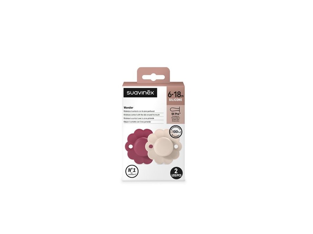 SUAVINEX Dudlík SX PRO fyziologický 2 KS WONDER 6/18m - Viva Magenta + Mauve Chalk