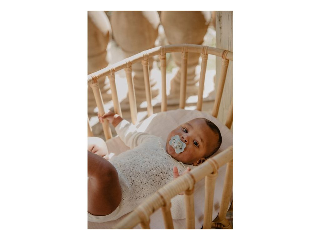 Pomáhá předcházet podráždění v peribukální oblasti, kde je pokožka v ranné fázi růstu dítěte zvláště citlivá právě pro nadměrné slinění. Dudlík bez kroužku poskytuje nezávislost Vašemu miminku, aby si jej děti mohly samy vkládat/vyndávat.