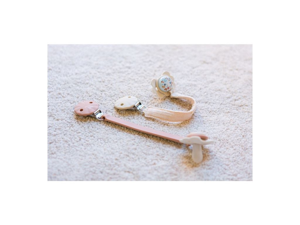 Klip, umožňuje upevnit dudlík na oblečení dítěte a předchází jeho případnému upadnutí na nečistou zem anebo jeho ztrátě.