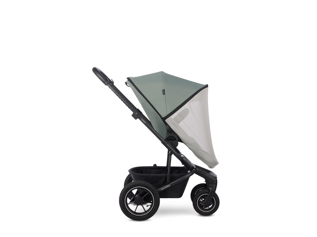Ať je počasí jakékoli, není třeba se bát. Vaše miminko zůstane ve stínu nebo pěkně v suchu díky extra velké stříšce Harvey, která poskytuje ochranu před sluncem UPF 50 a je vodoodpudivá.