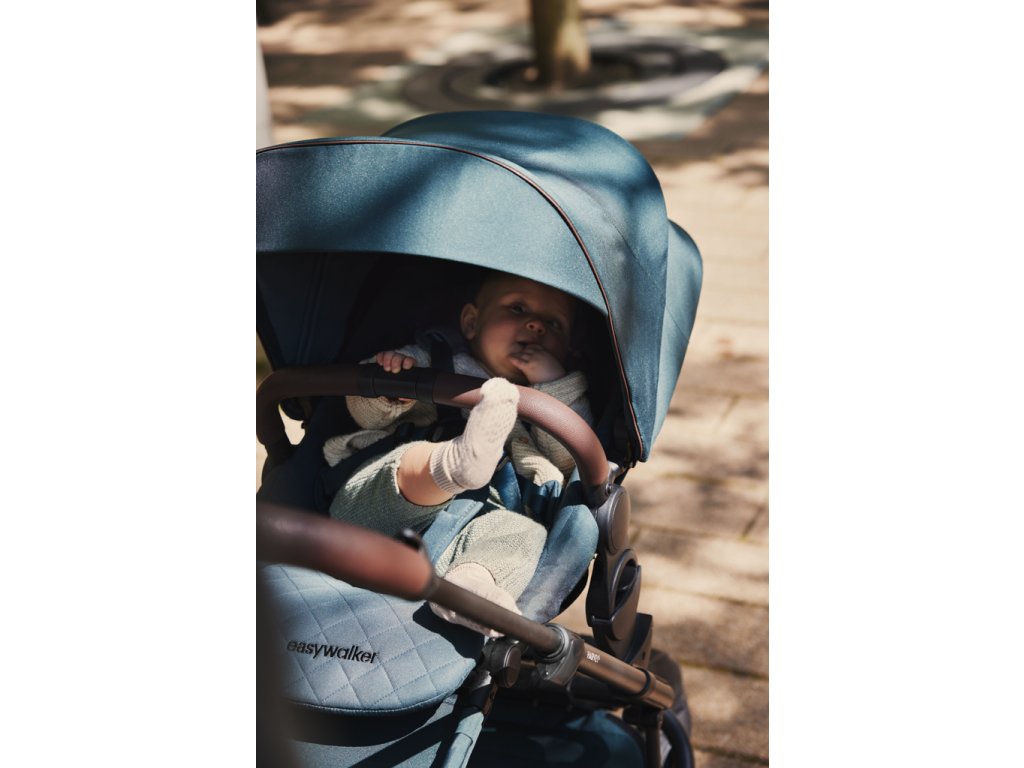 Ať je počasí jakékoli, není třeba se bát. Vaše miminko zůstane ve stínu nebo hezky v suchu díky extra velké stříšce Harvey s okénkem a stylovými koženými detaily, která poskytuje UPF 50 ochranu proti slunci a je vodoodpudivá.
