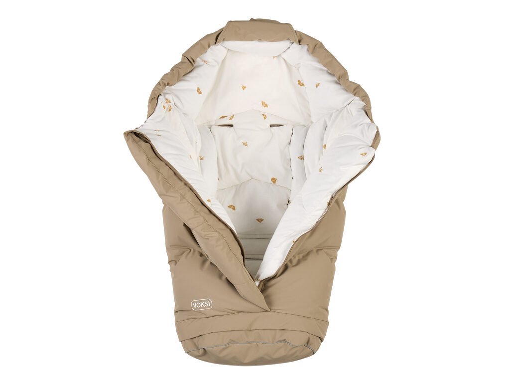 Fusak je navržen s inovativními otvory pro paže, které lze otevřít a zavřít pomocí zipu, což umožňuje dítěti se aktivně podílet na dění kolem sebe a zároveň udržovat teplo uvnitř fusaku. Jedinečný design zadního otvoru pro pásy kočárků pomáhá jeho použití v různých modelech kočárků disponujících různými popruhy. Zadní strana je dále vybavena protiskluzovým materiálem, což znamená, že v kočárku drží na svém místě, aniž by klouzala. Součástí fusaku je prodlužovací díl, který lze snadno připnout pomocí zipu ve spodní části, když dítě potřebuje více místa. Malému miminku přiložená prodlužovací část vyplní dolní prostor a zajistí extra teplo a pohodlí. Dodává se s měkkou hlavovou vložkou, která poskytuje extra pohodlí pro dítě a chrání látku pod hlavičkou. Stahovací šňůrku kolem oblasti hlavy lze upravit tak, aby vyhovovala povětrnostním podmínkám a preferencím dítěte. Středový přední otvor na zip umožňuje snadný přístup k dítěti a širokou klopu lze použít k extra těsnému zabalení vašeho dítěte. Nezapomeňte na dostatek vzduchu kolem hlavy dítěte a dítě nenechávejte spát bez dozoru.