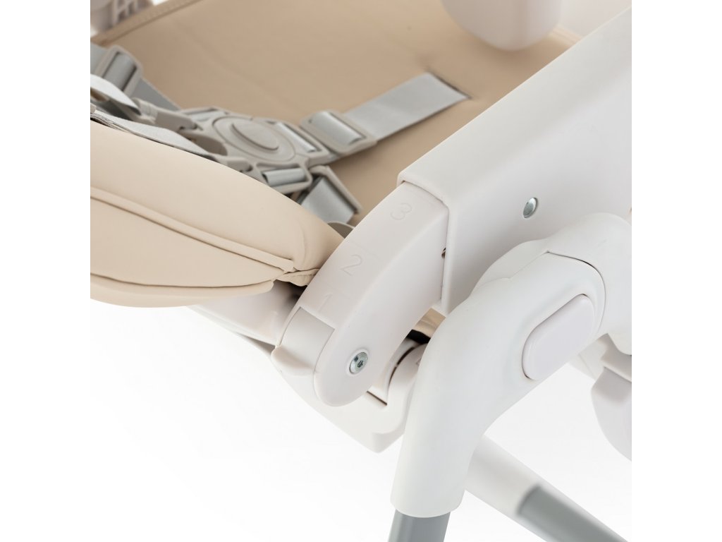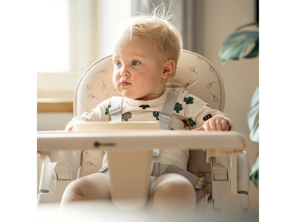 Péče o životní prostředí, kterou jsme při tvorbě této židle zohlednili, nezastínila nejdůležitější aspekty výrobku – byl totiž navržen tak, aby co nejbezpečněji zlepšil každodenní život děťátka i rodičů. Židle má všechny funkce, které usnadňují každodenní krmení: lze ji snadno sundat a vyčistit, má 5-bodové bezpečnostní pásy, nastavitelnou opěrku zad, nastavitelnou opěrku nohou, nastavitelnou výšku, dvě polohy pro podnos s horní částí, kterou lze mýt v myčce nádobí. Stabilní konstrukce židle zajistí bezpečnost vašeho dítěte bez ohledu na to, jak je aktivní nebo pohyblivé. Vysoce kvalitní provedení, promyšlená konstrukce, moderní a originální design a kompaktní skládání jsou nadčasové vlastnosti, které zajistí pohodlí pro vaše dítě od okamžiku, kdy se naučí sedět.