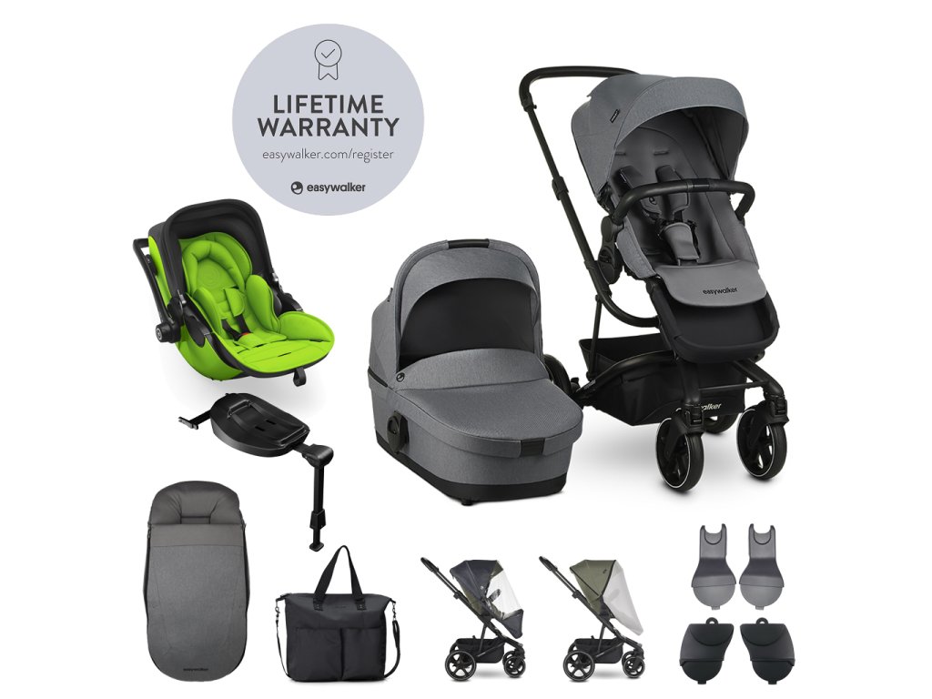 EASYWALKER Set 4XL kočárek kombinovaný Harvey3 Fossil Grey/Spring Green s příslušenstvím