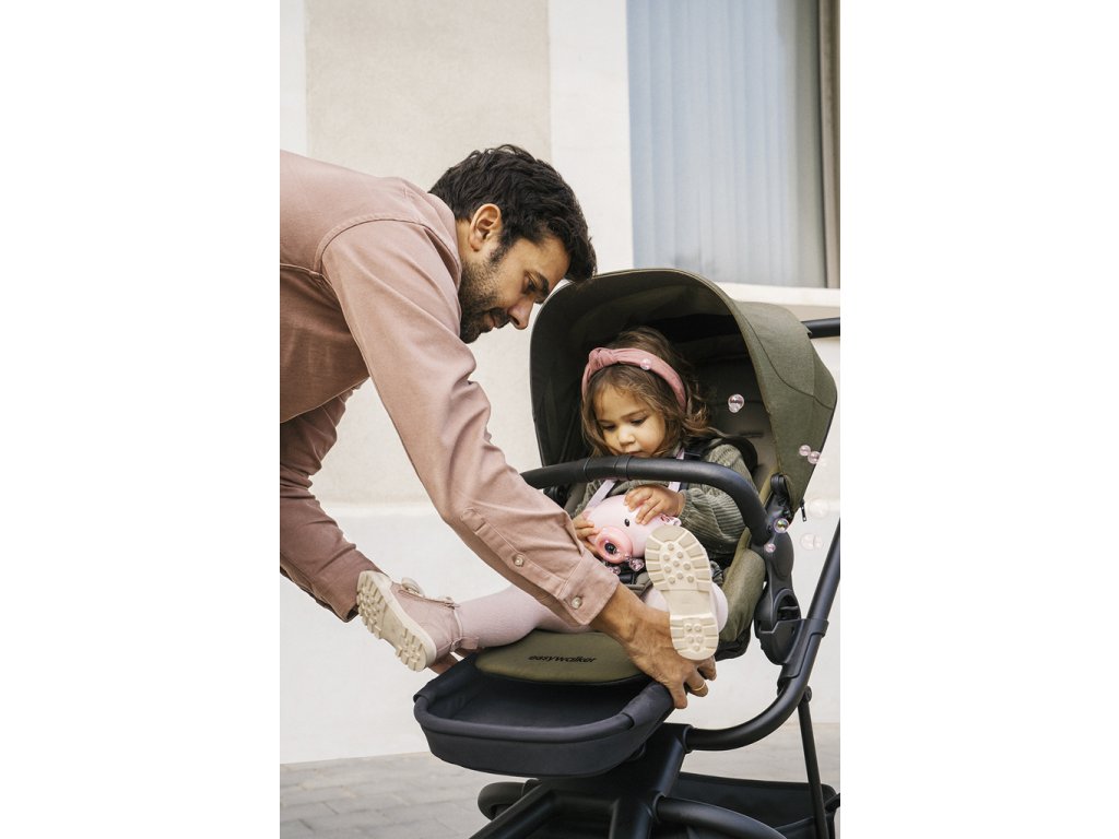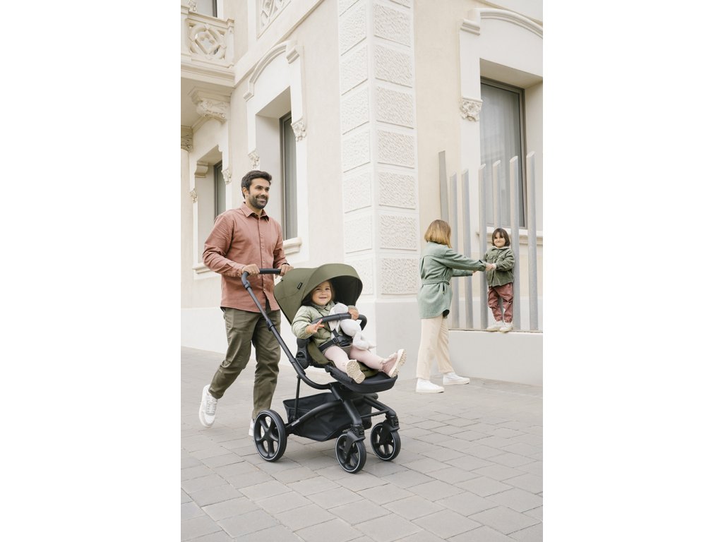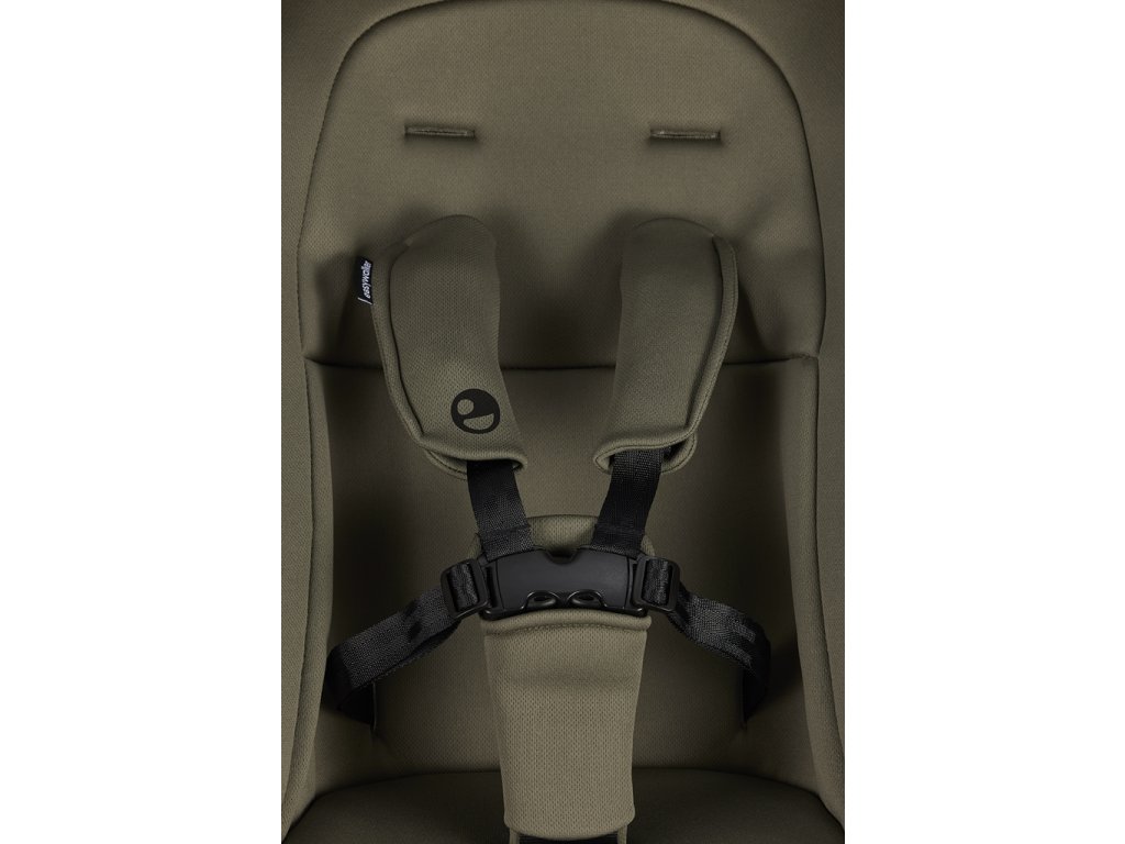 Ještě lepší boční ochrana díky novému absorpčnímu prvku umístěnému v kloubu rukojeti. Také vložka obsahuje prvky boční ochrany. Nově tvarovanou rukojeť, sedačka v autě potřebuje o 4 cm méně místa než jeji předchůdce, lépe se drží a i v menších autech sedačku snadno použijete. Nově řešená boudička je stabilnější a lépe se nastavuje do žádoucí polohy. To oceníte hlavně při vycházce, kdy je sedačka upevněná na podvozku.