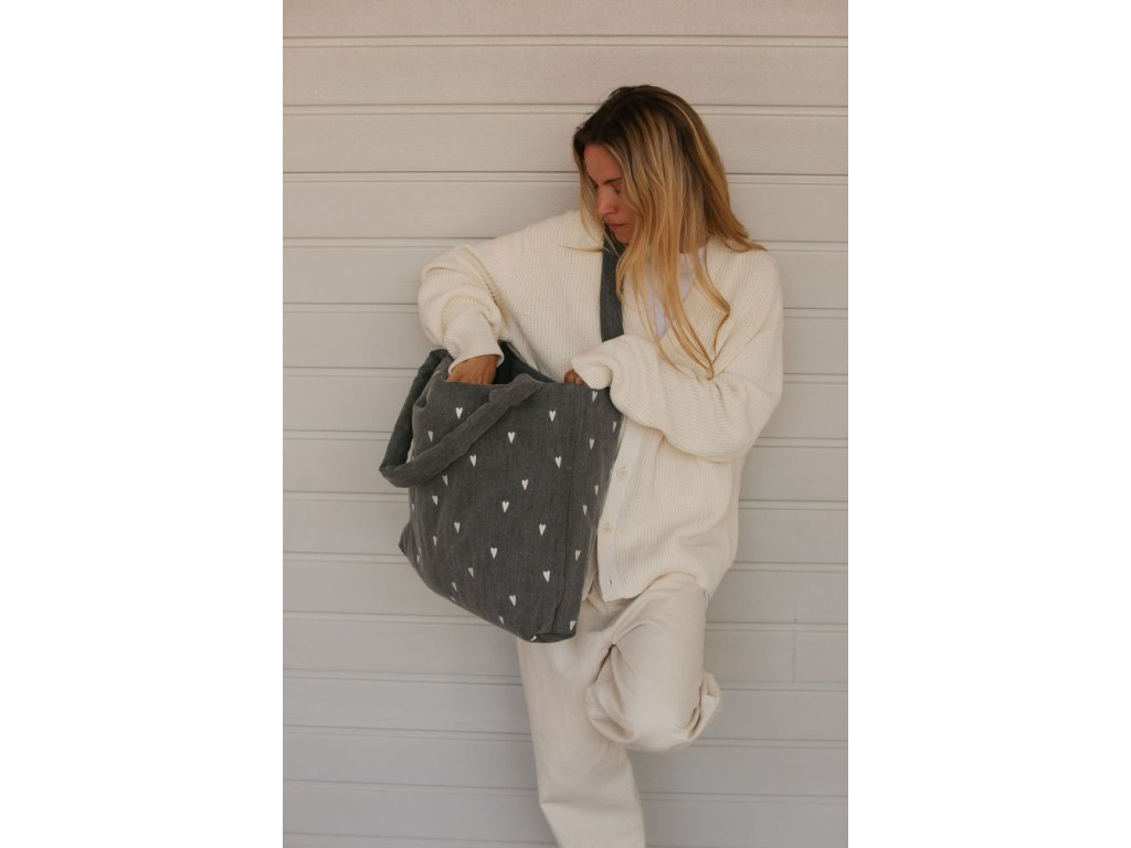STUDIO NOOS - Denim MOM BAG Grey Hearts