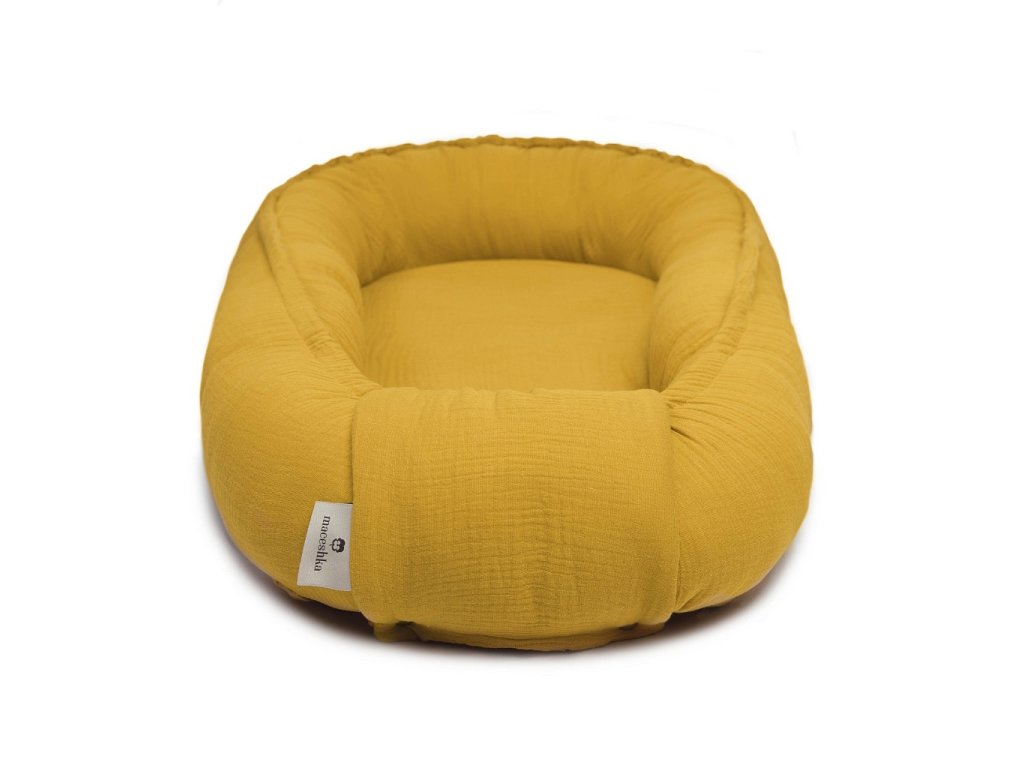 Mušelínové hnízdečko Maceshka miminkům usnadní přechod od maminky z bříška na svět. Děťátko se v menším prostoru hnízdečka cítí bezpečněji a lépe se mu usíná. Je ručně šité ze 100% bavlny nejvyšší kvality.