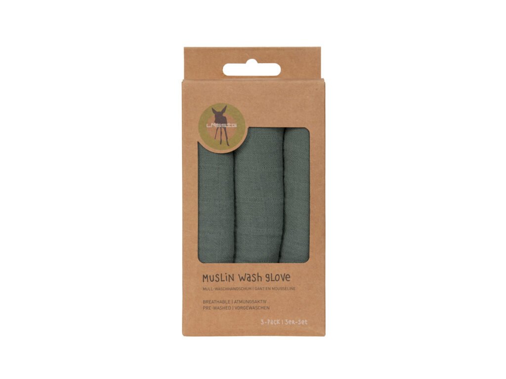 LÄSSIG Muslin Wash Glove Set 3 pcs 2025 petrol green