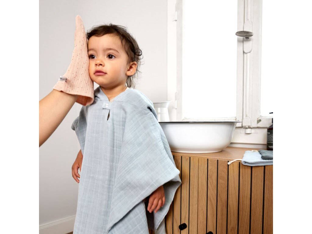 Mycí rukavice jsou pomocníkem pro každodenní péči o miminko. Jsou vyrobené z dvouvrstvého předepraného mušelínu, jsou prodyšné a velmi jemné k pokožce dítěte. Set 3 mycích rukavic může být použit jak k mytí obličeje, tak k mytí celého těla děťátka. Jsou určené jak novorozencům, tak dětem do 3 let. Rukavice mají mnohostranné využití, lze je rovněž využít např. pro domácí úklid.
