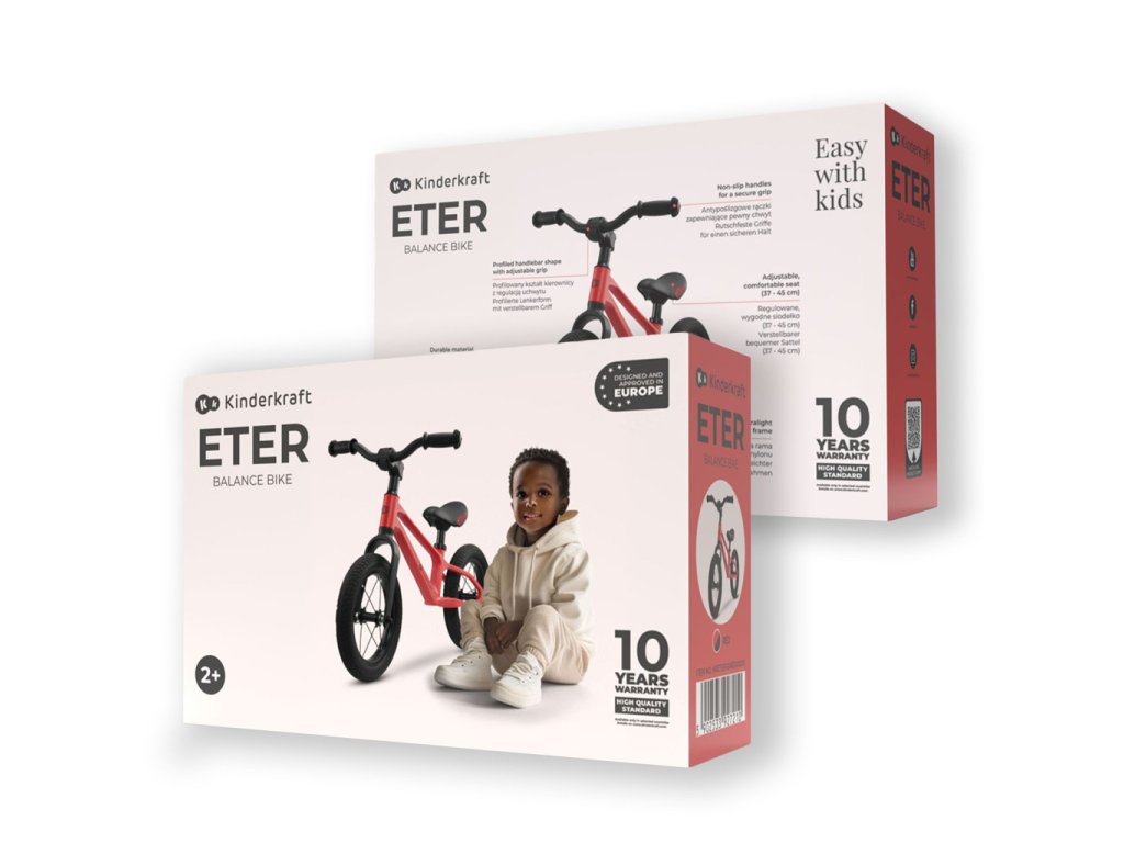 Vždy první v cíli. ETER je ultralehké balanční odrážedlo (3 kg) se sportovním designem, ideální pro malé milovníky rychlosti. Monolitický rám z nylonu je extrémně lehký, odolný vůči vlhkosti, korozi i mechanickému poškození. Nastavitelné sedátko a 12palcová bezúdržbová PU kola zajišťují pohodlnou a stabilní jízdu. Protiskluzové rukojeti, ergonomická řídítka a bezpečná konstrukce poskytují maximální ochranu. Rám slouží také jako praktická rukojeť pro přenášení – nebo jako místo k odpočinku během hry.