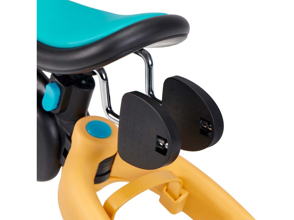 - pedály, které lze vyjmout bez použití nářadí (za účelem přeměny 4TRIKE ze šlapací tříkolky na odrážedlo), můžete připnout pod sedlo. Jsou vždy po ruce a neztratí se během procházky.