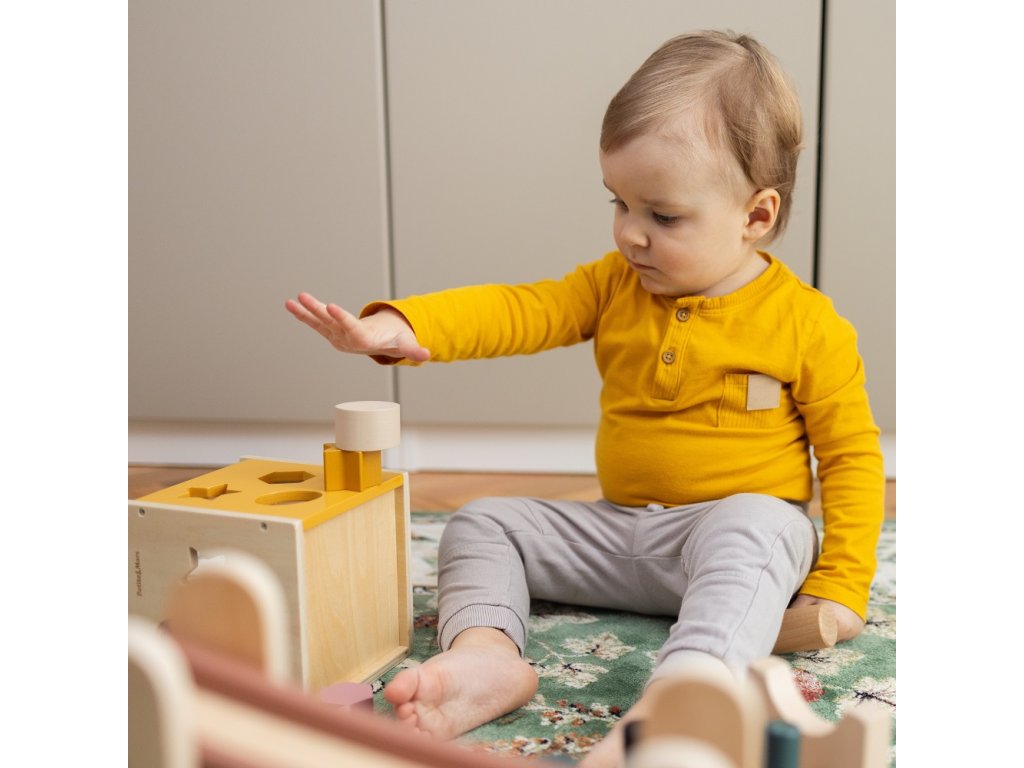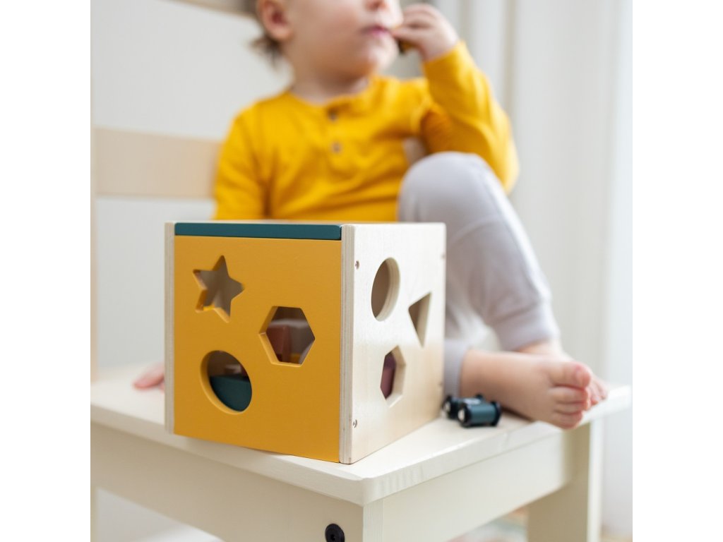 Není jen pokusem o přiřazení kostky k příslušnému otvoru, ale také podnětem k myšlení a vnímavosti. Rozmanitost tvarů a barev podněcuje dětskou představivost a umožňuje objevovat rozdíly mezi jednotlivými prvky.