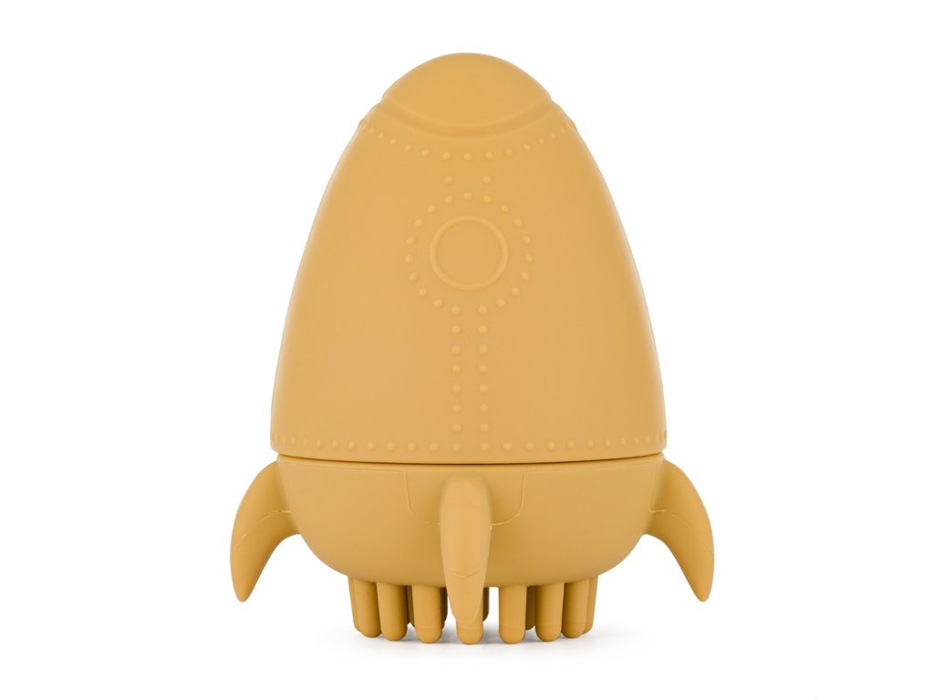PETITE&MARS Hračka silikonová do vody s kartáčkem Splashy Rocket Intense Ochre 6m+