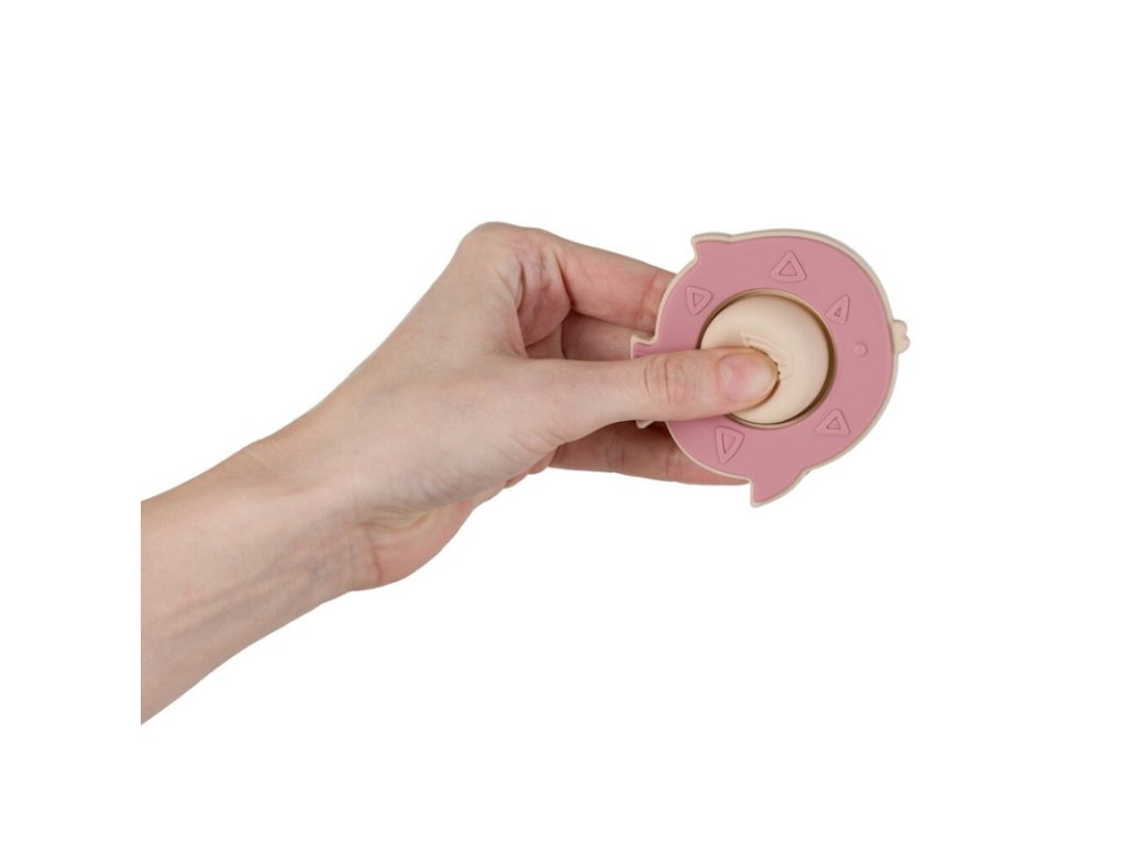 Hračka je vyrobena z vysoce kvalitního potravinářského silikonu, který je bezpečný i pro nejmenší děti. Je navržena tak, aby ulevila dětským dásním a podporovala schopnost žvýkat, zároveň povzbuzuje k cvičení úchopu.